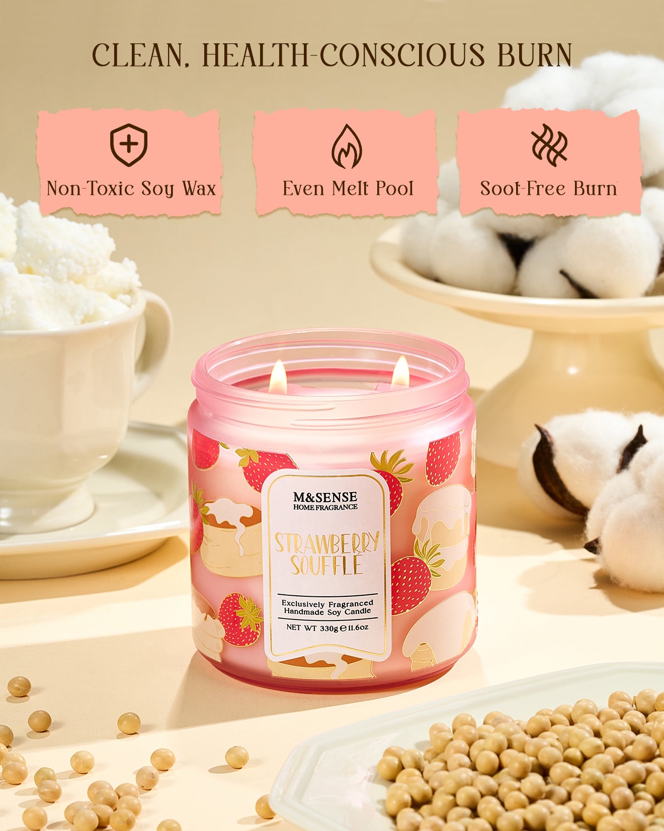 M&SENSE Candles bring seasonal warmth with fragrances of creamy sweetness, soft vanilla, and gentle spices, creating a calming atmosphere perfect for cozy evenings and autumn décor. Housed in frosted glass jars with delicate gold foil details, they combine rustic charm with modern elegance, making them stylish accents for kitchens, dining tables, or thoughtful gifts. Crafted from natural soy wax with dual cotton wicks, they burn cleanly and evenly, while eco-friendly kraft packaging highlights a commitment to sustainability. Simple, refined, and sustainable, they infuse any space with warmth and timeless sophistication.