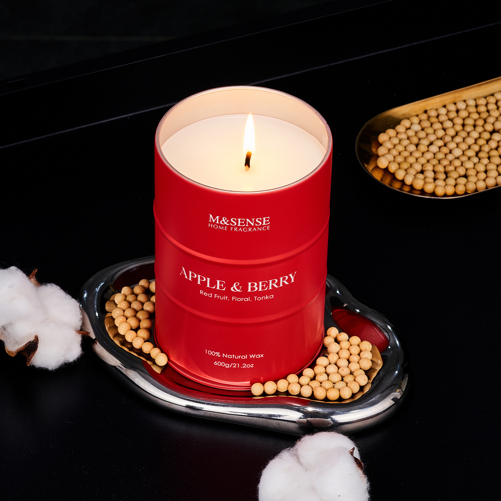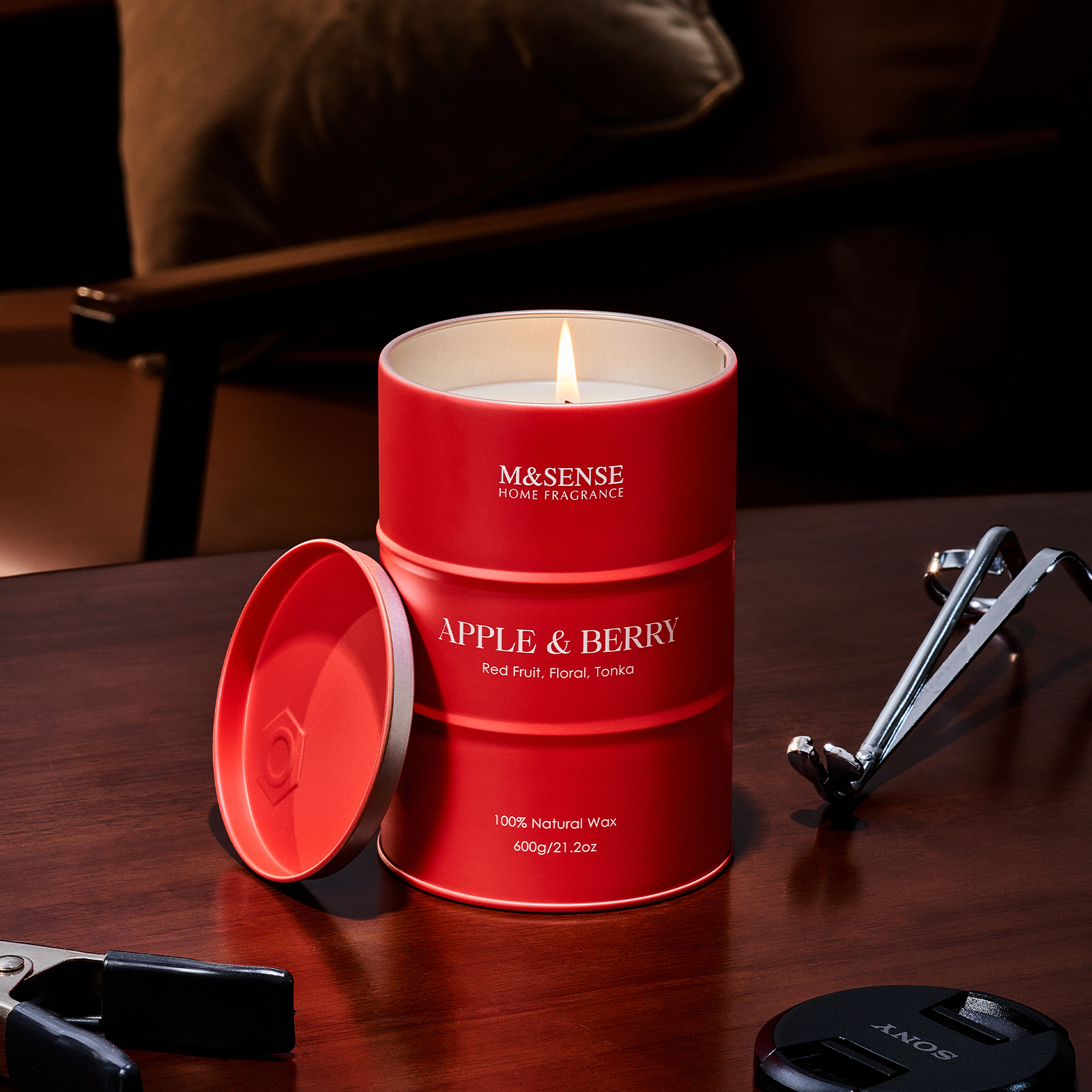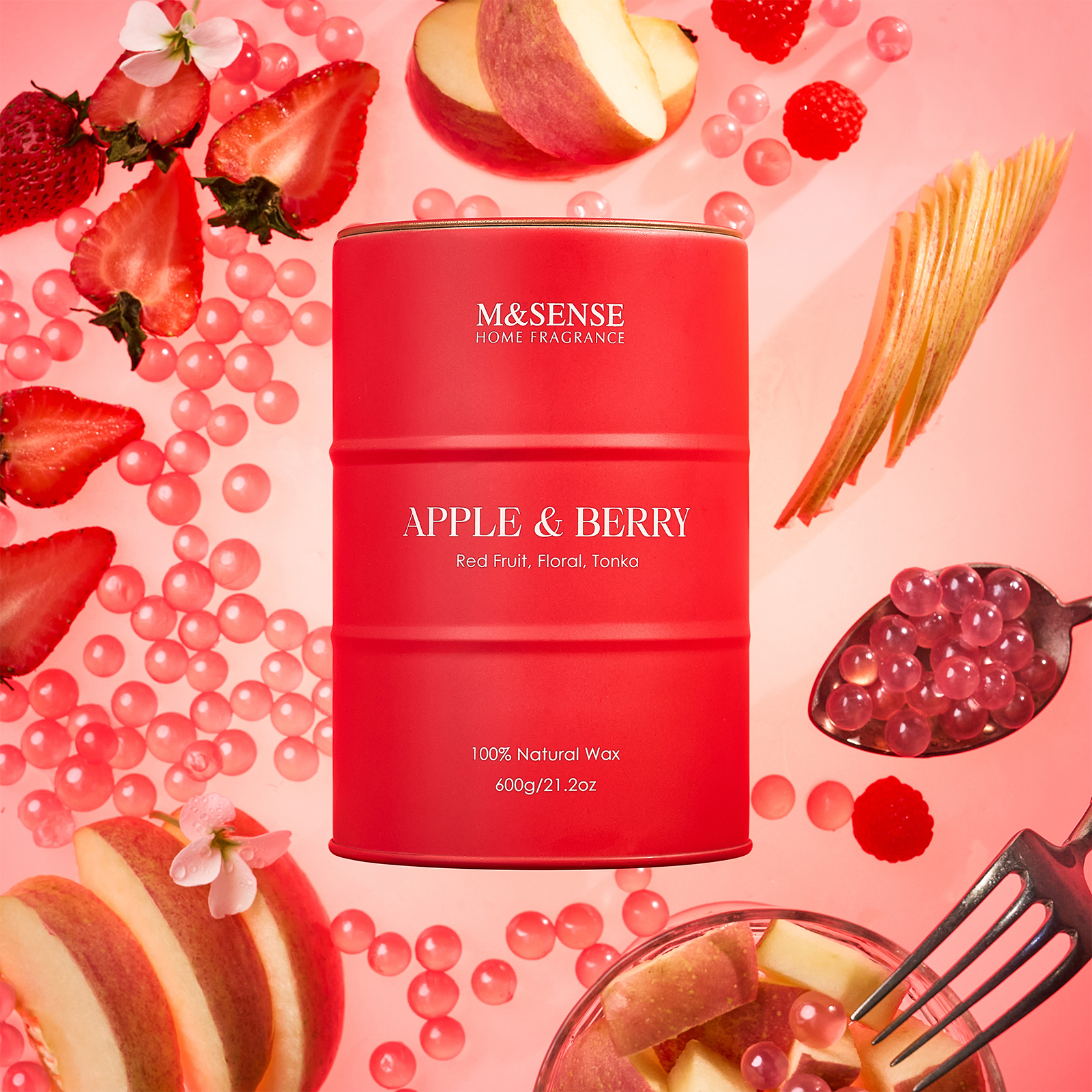 Sweet and cheerful, this M&Sense Scented Candle blends juicy red fruits, floral tonka, and a crisp apple twist. Nestled in a vibrant apple-red barrel, it adds a playful warmth to your space — bright, cozy, and full of everyday delight.