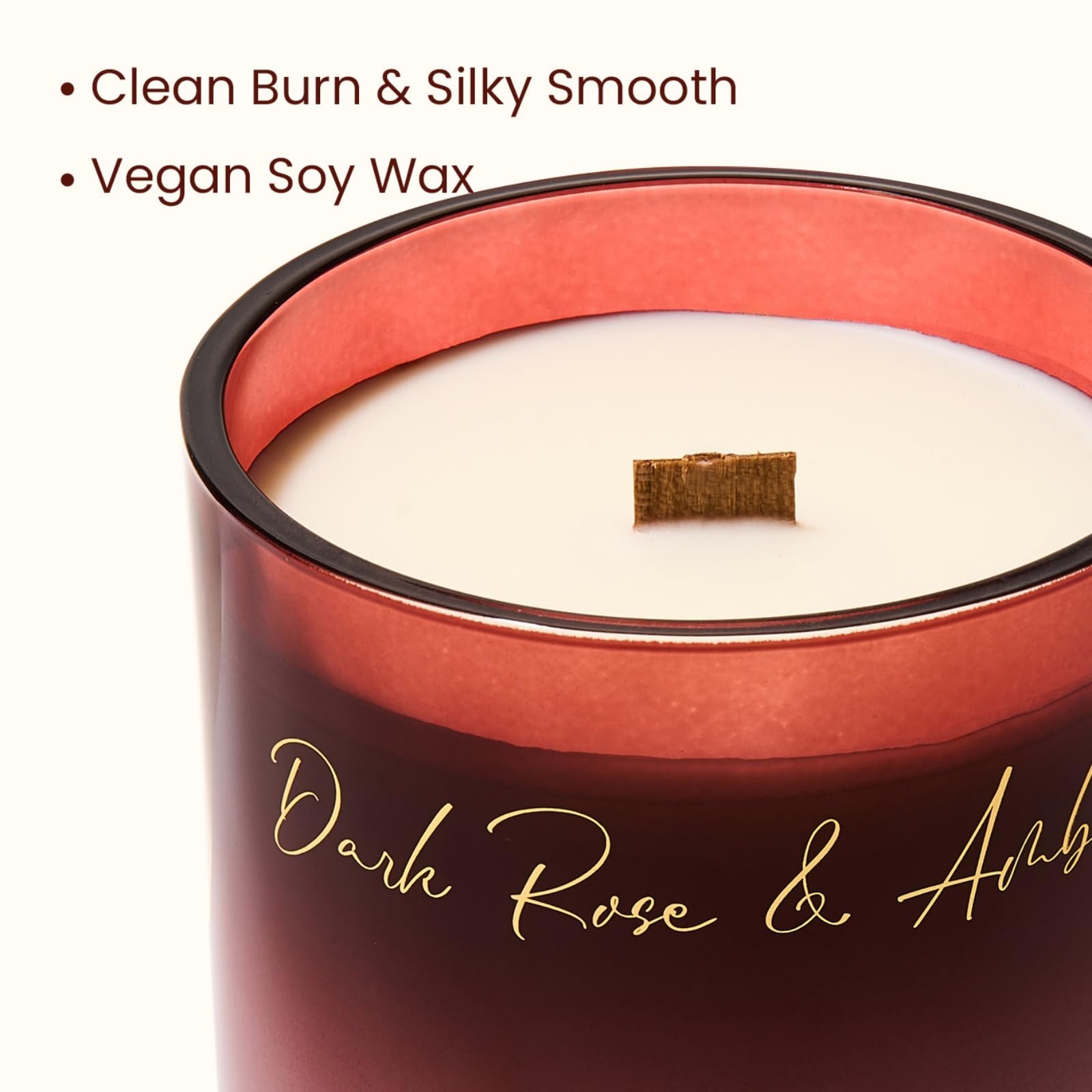 Experience the warmth of M&SENSE with our 16.6oz wood wick candle, infused with premium oils for a rich fragrance journey and up to 95 hours of burn time. The natural North American black cherry wooden wick produces a soothing crackle, reminiscent of a campfire, while enhancing fragrance throw for a long-lasting aromatic experience. Made from natural wax and free of paraffin, phthalates, and parabens, it provides a safe, toxin-free burn for your home. Beautifully packaged in a reusable jar with sustainable wrapping, it’s ideal for gifting or adding an elegant accent to any space.