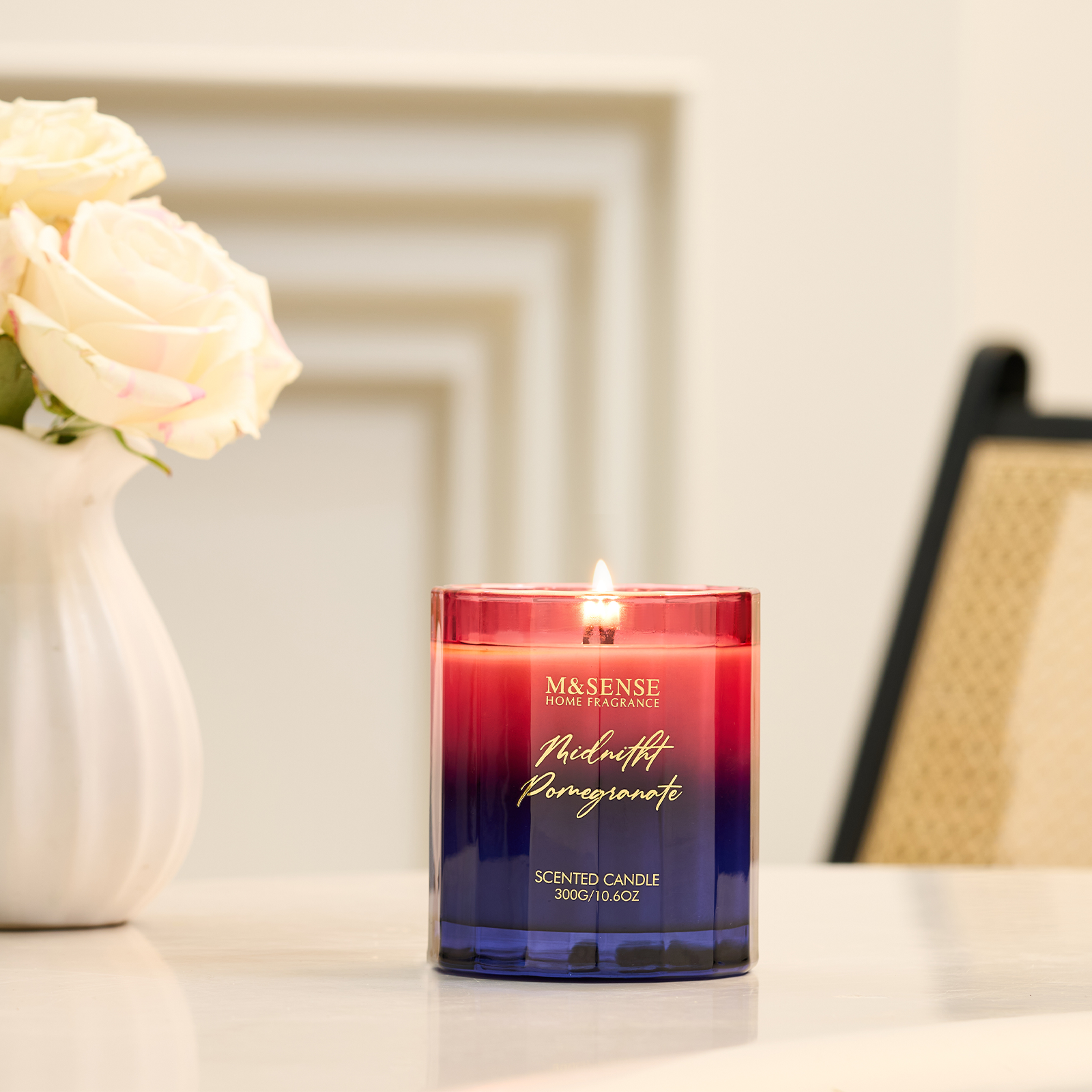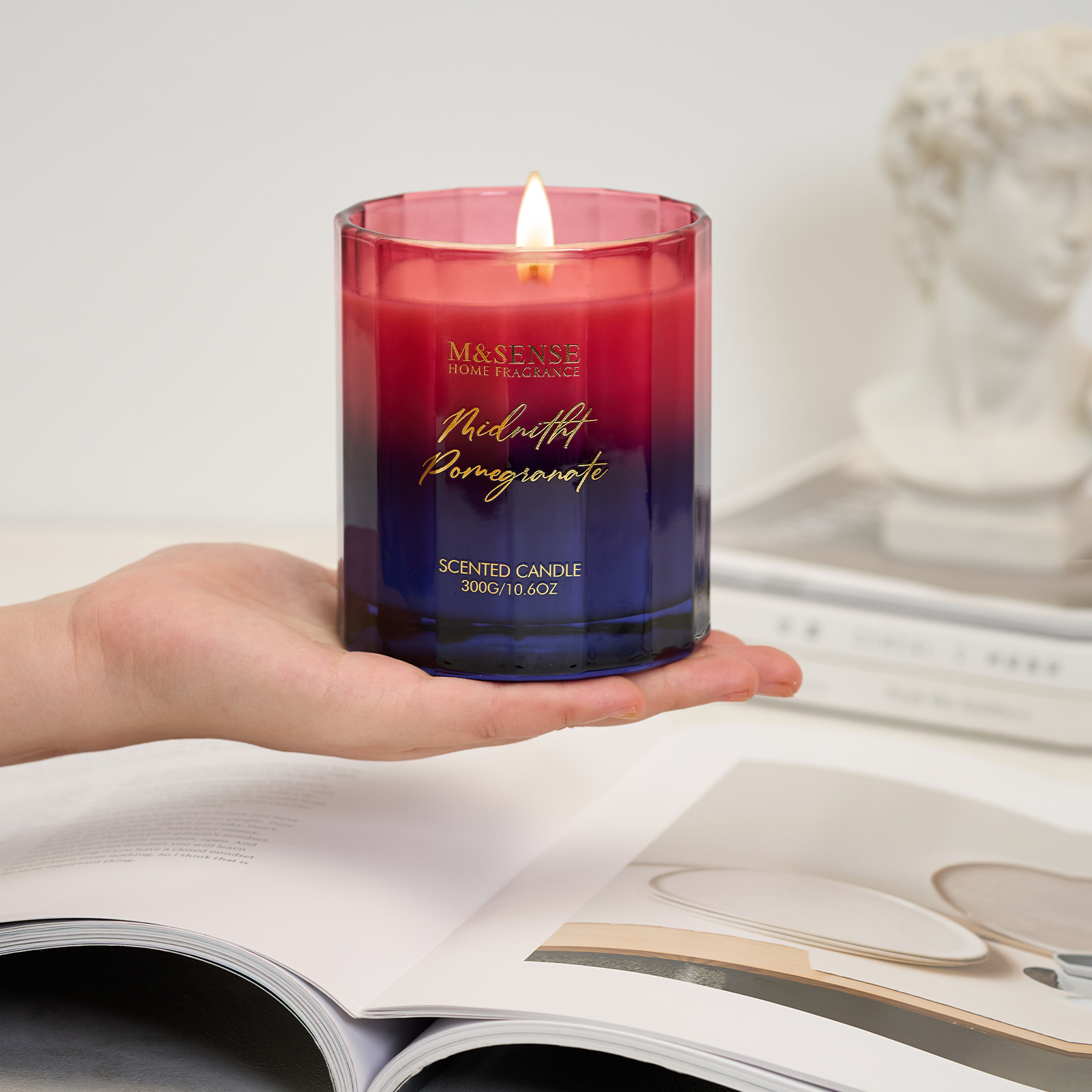 M&SENSE Artistic Gradient Candles transform spaces with mesmerizing color transitions and gold-plated patterns. Featuring perfume-grade fragrances, they create luxurious scents while serving as sophisticated home decor. The unique aesthetic design elevates interiors, blending artistry with functionality—perfect for gifts or personal enjoyment.