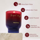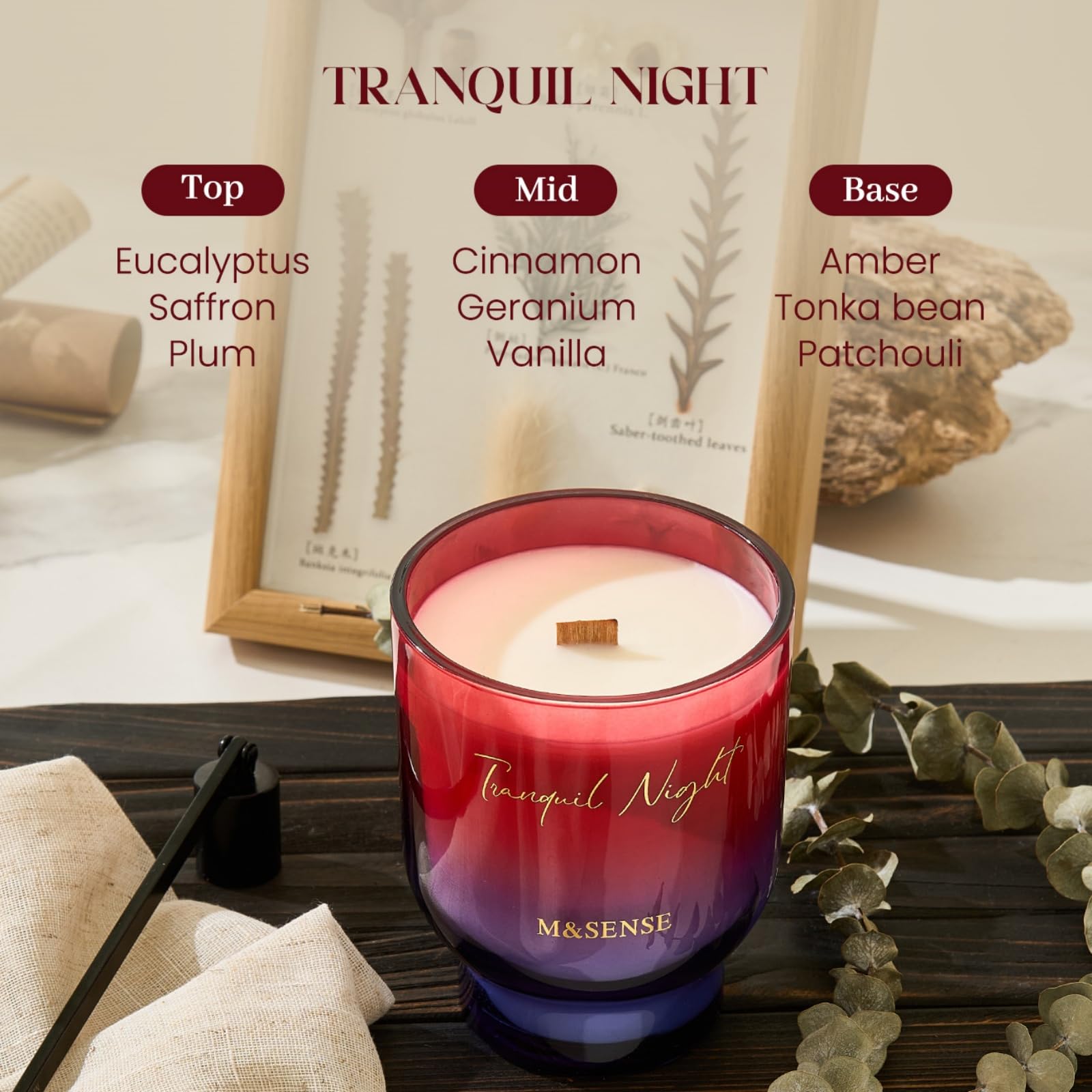 Experience the warmth of M&SENSE with our 16.6oz wood wick candle, infused with premium oils for a rich fragrance journey and up to 95 hours of burn time. The natural North American black cherry wooden wick produces a soothing crackle, reminiscent of a campfire, while enhancing fragrance throw for a long-lasting aromatic experience. Made from natural wax and free of paraffin, phthalates, and parabens, it provides a safe, toxin-free burn for your home. Beautifully packaged in a reusable jar with sustainable wrapping, it’s ideal for gifting or adding an elegant accent to any space.