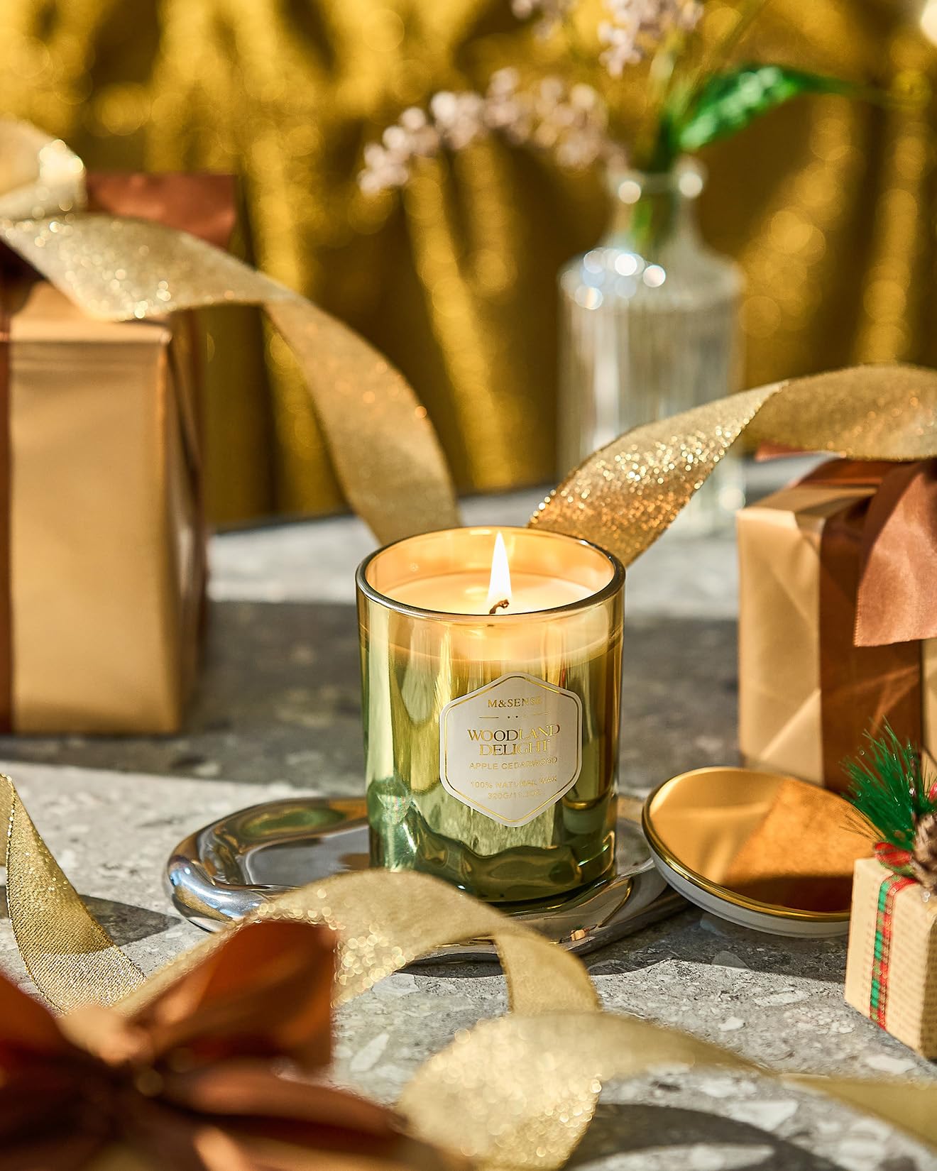 Celebrate the holidays with M&SENSE Christmas Candles, crafted from a natural blend of soy and vegetable wax for a clean, smoke-free burn. Packaged sustainably in recycled cardboard and honeycomb paper, it’s eco-friendly and reusable. Light it to release a festive fragrance of lively fruits, warm amber, and elegant violet, creating an enchanting, relaxing ambiance. The electroplated wax cup adds a bright, reflective finish, glowing beautifully when lit to enhance any holiday décor. Each 11.3oz candle offers 60–70 hours of room-filling fragrance, making it the perfect seasonal gift for family, friends, or teachers—ideal for Christmas, Thanksgiving, or simply sharing warmth this winter.
