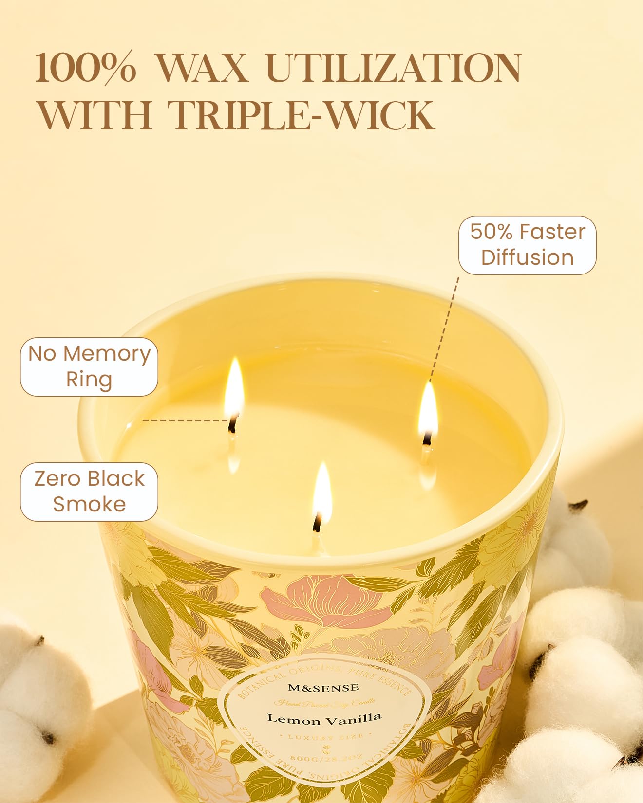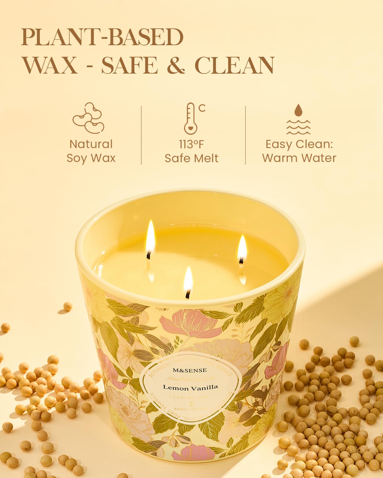 - 100% natural wax formulated from premium soybeans