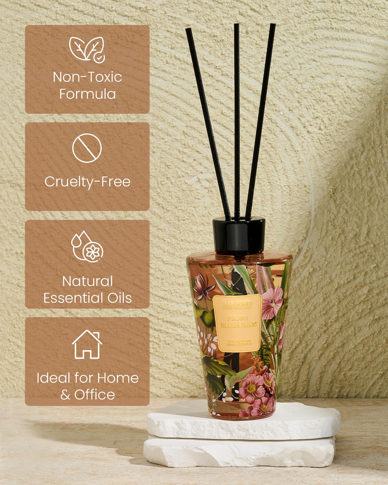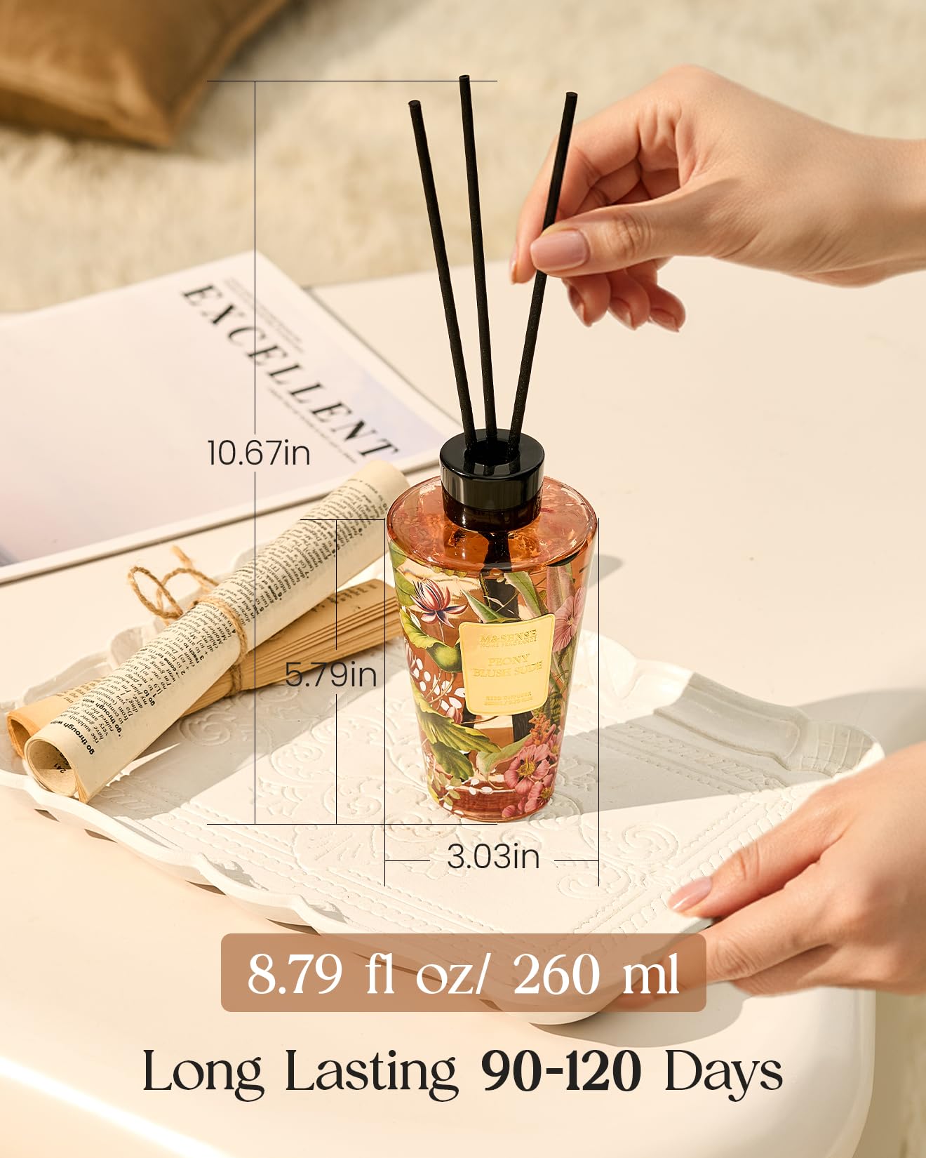 Crafted with premium natural essential oils, this diffuser delivers a pure, balanced aroma that’s subtle, soothing, and never overpowering. With its large 8.8 fl oz capacity and slow-release technology, it provides up to 120 days of continuous fragrance, keeping your home beautifully scented all season long. The elegant bottle, featuring artistic water-decal patterns, doubles as stylish décor for any space. Perfect for neutralizing odors and promoting daily relaxation, it’s also a thoughtful gift for birthdays, holidays, or housewarmings—where refined fragrance meets timeless design.