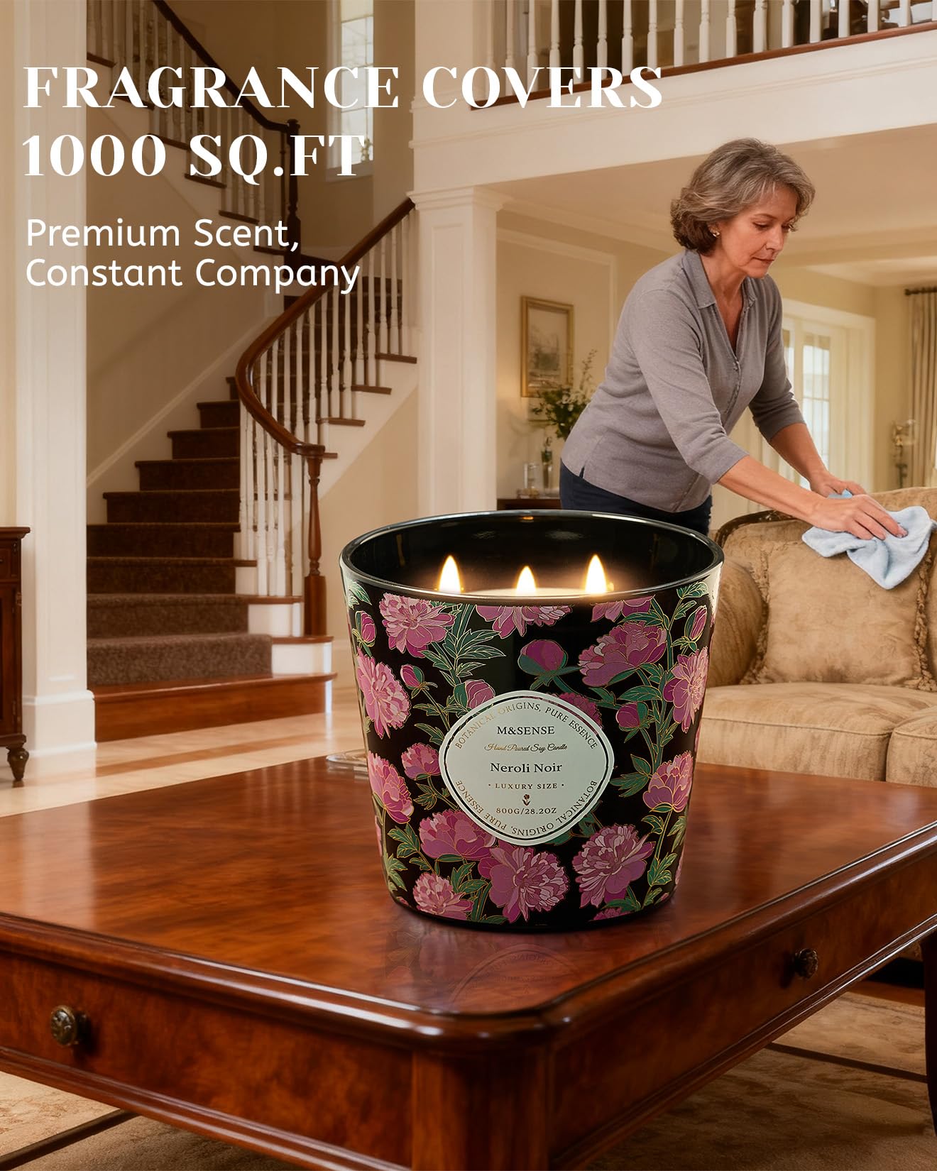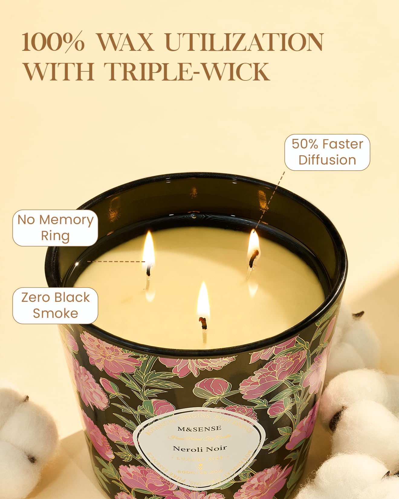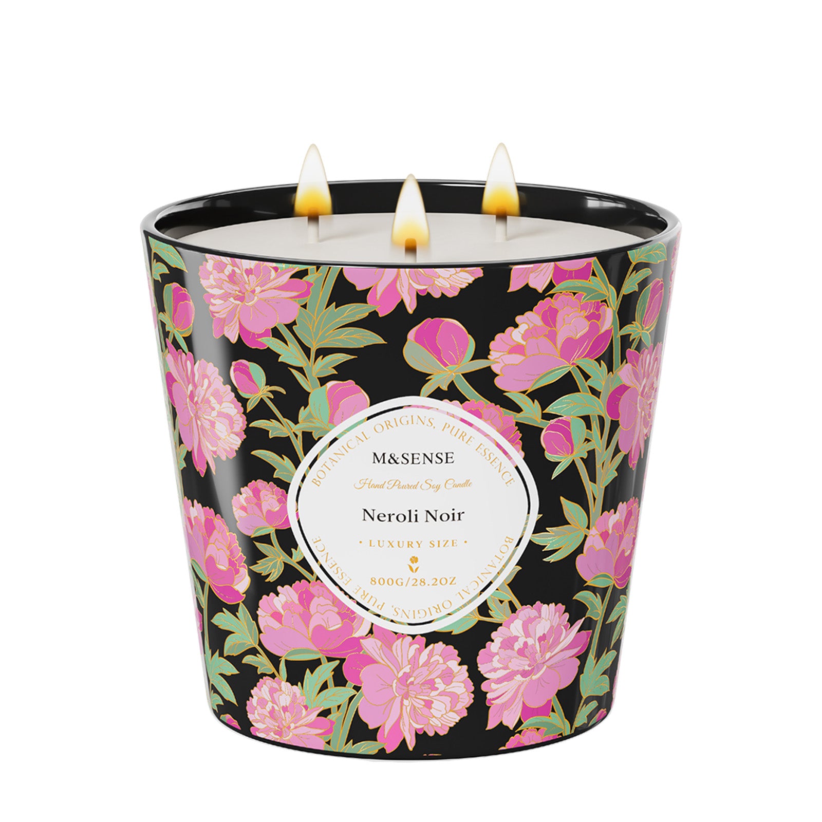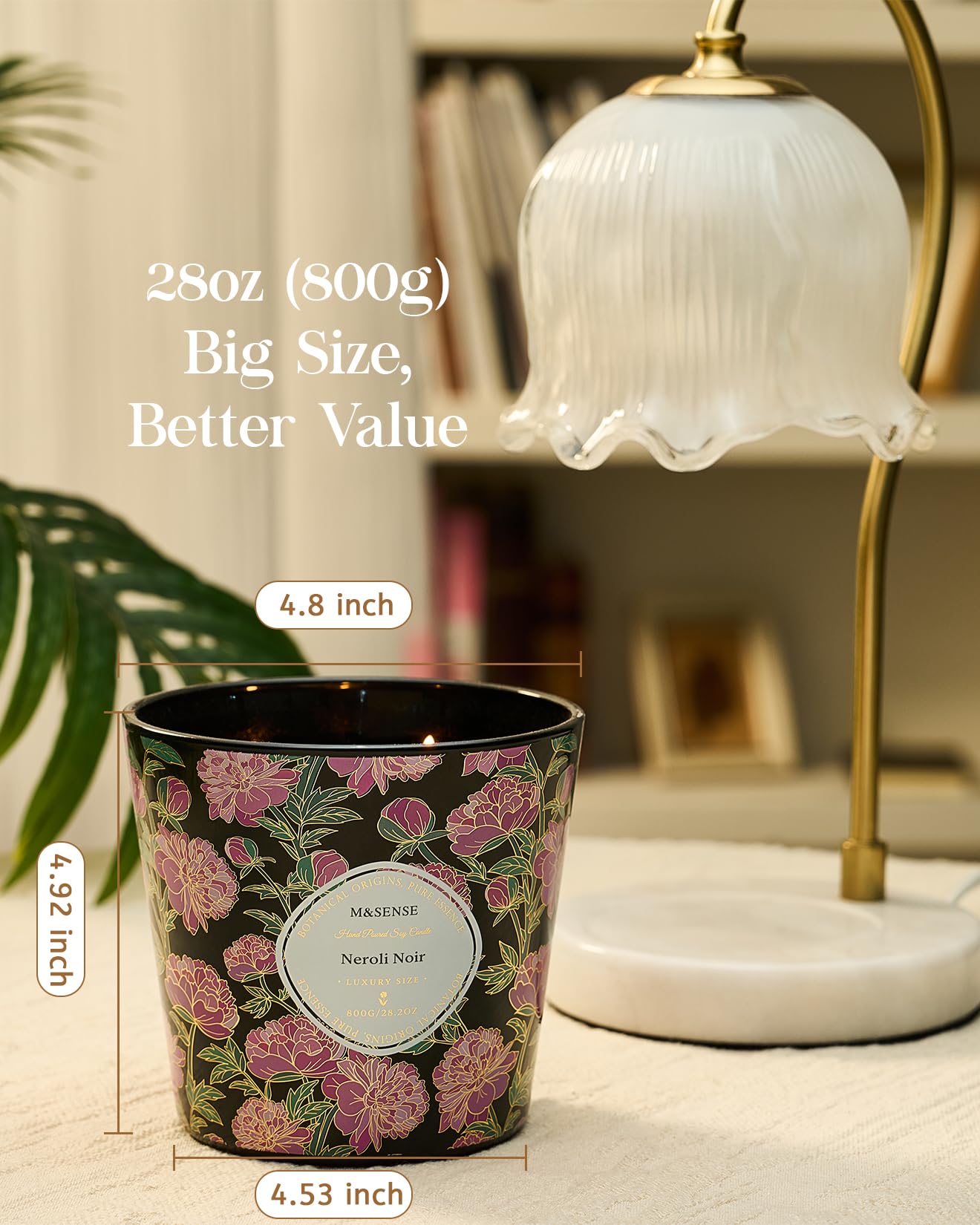 Experience elegance and performance in one with this 28.2oz triple-wick candle, designed for an even, steady burn and over 120 hours of lasting fragrance. Made from 100% natural soy wax, it burns cleanly and safely without toxic soot—perfect for homes with sensitive individuals. Developed in collaboration with world-class perfumers, each scent offers exceptional depth and longevity. The elegant cone-shaped vessel, adorned with golden silk-screen detailing, adds a luxurious touch to any room, making it a stunning gift or a refined statement piece for your décor.