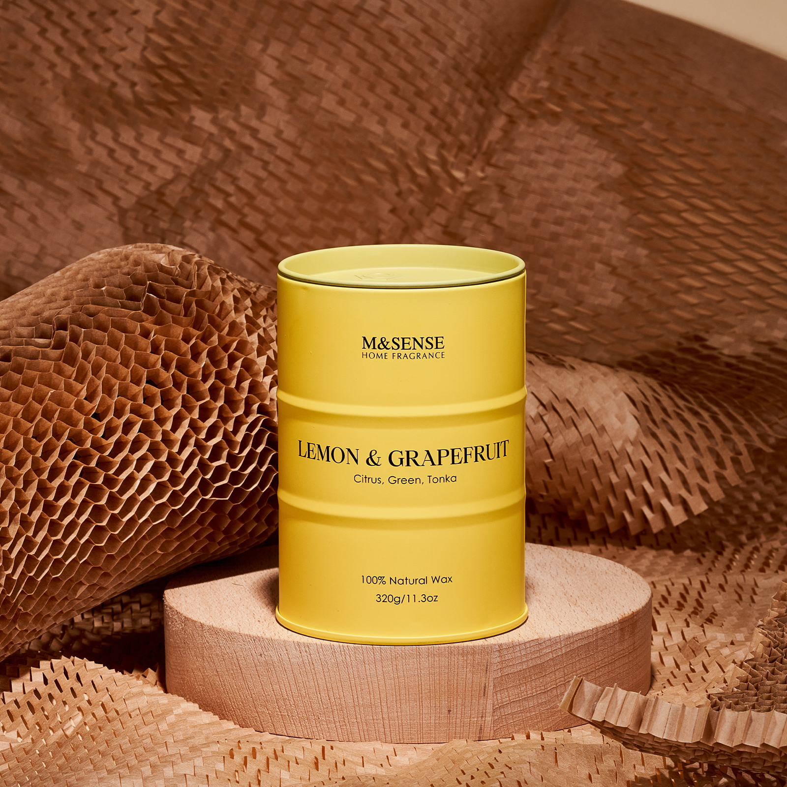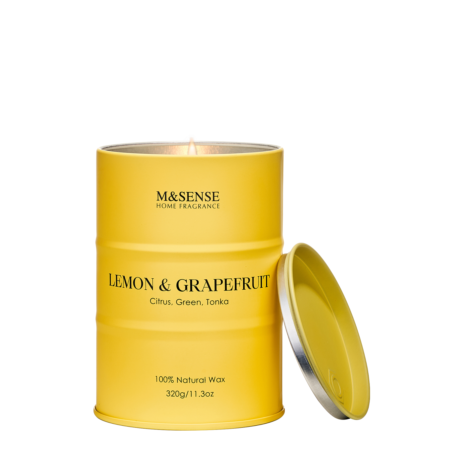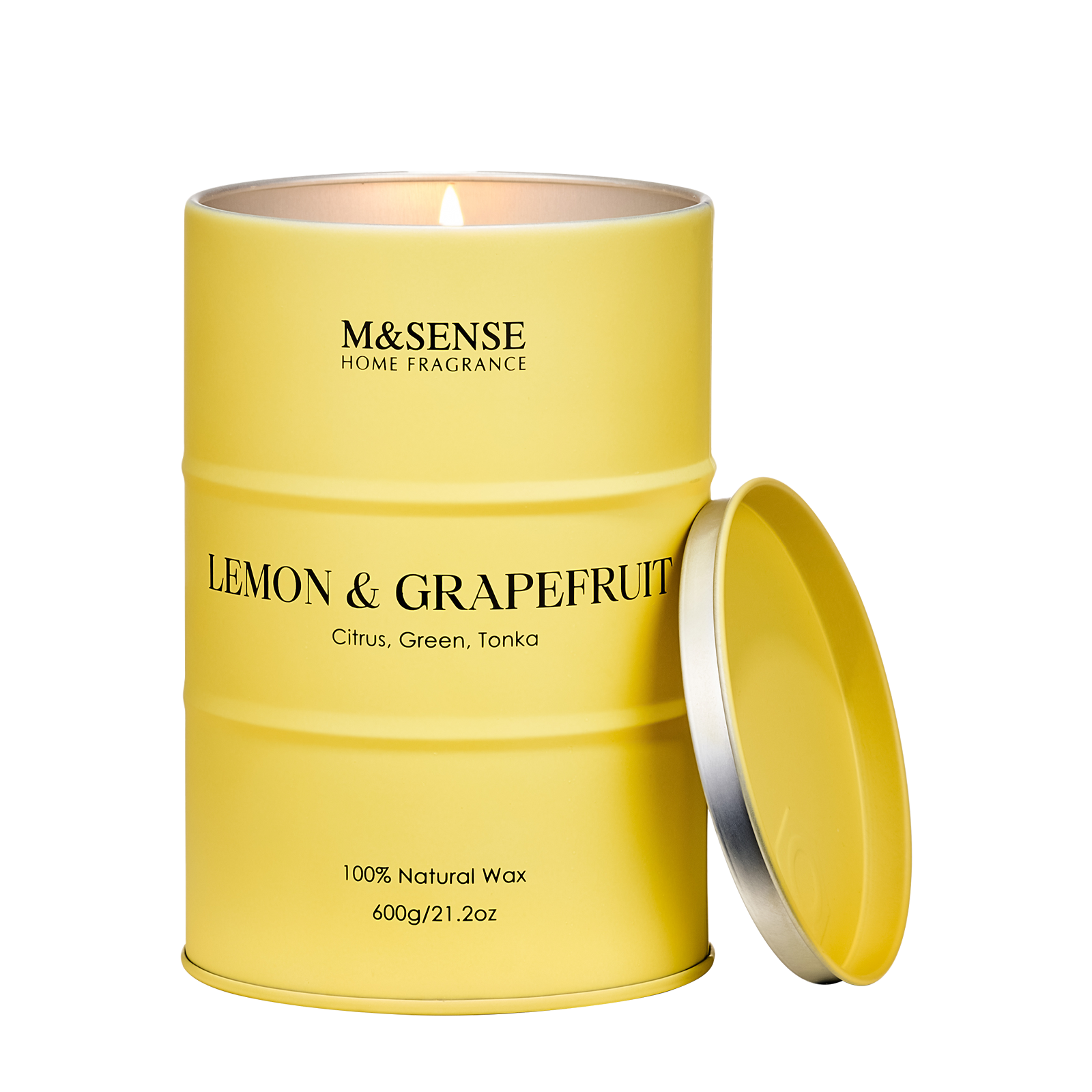 Fresh and radiant, this M&Sense Scented Candle opens with sparkling citrus, crisp green notes, and a soft touch of tonka. Housed in a bright yellow barrel, it instantly lifts the mood and brings sunshine indoors — zesty, joyful, and full of positive energy.