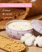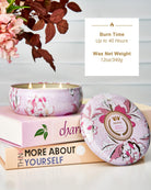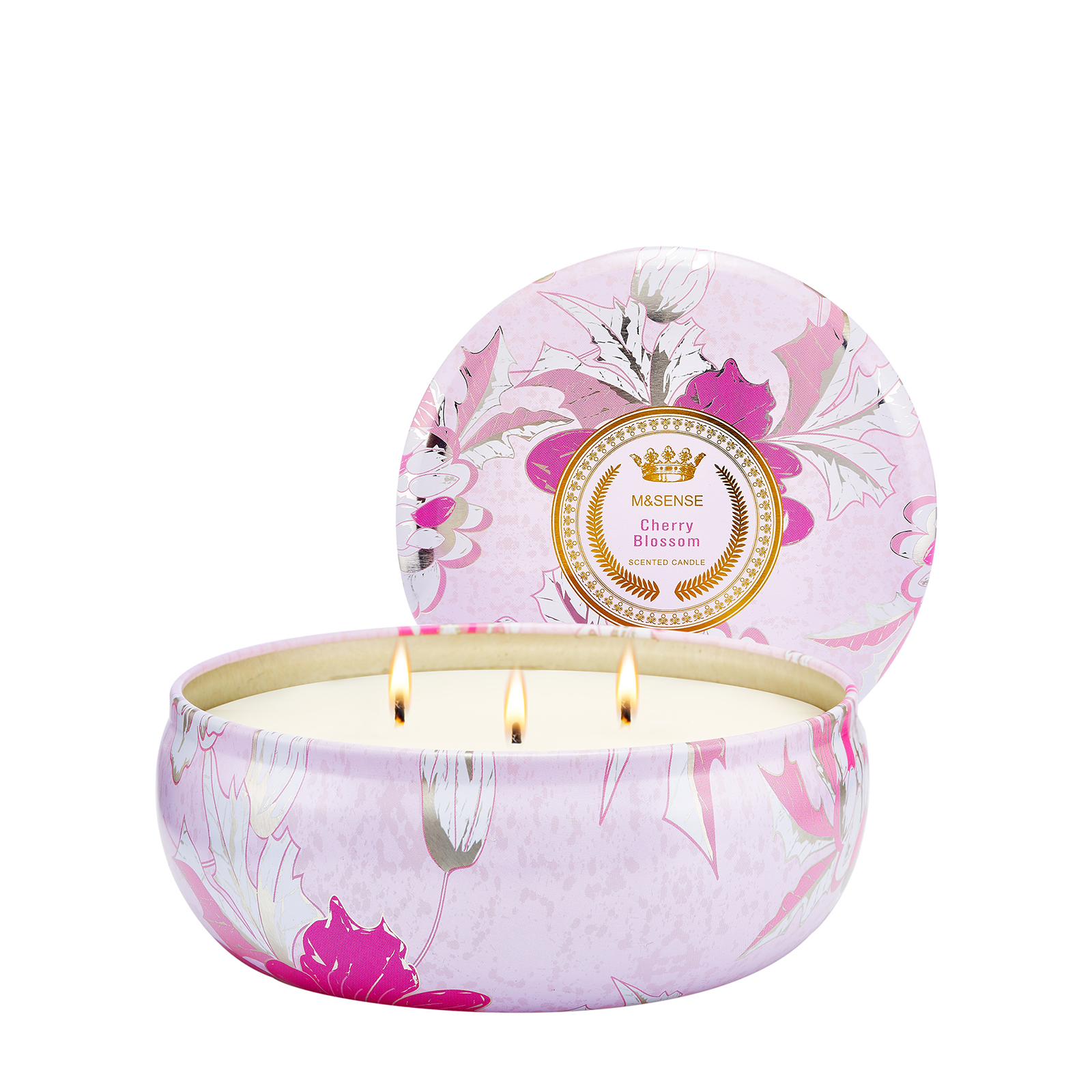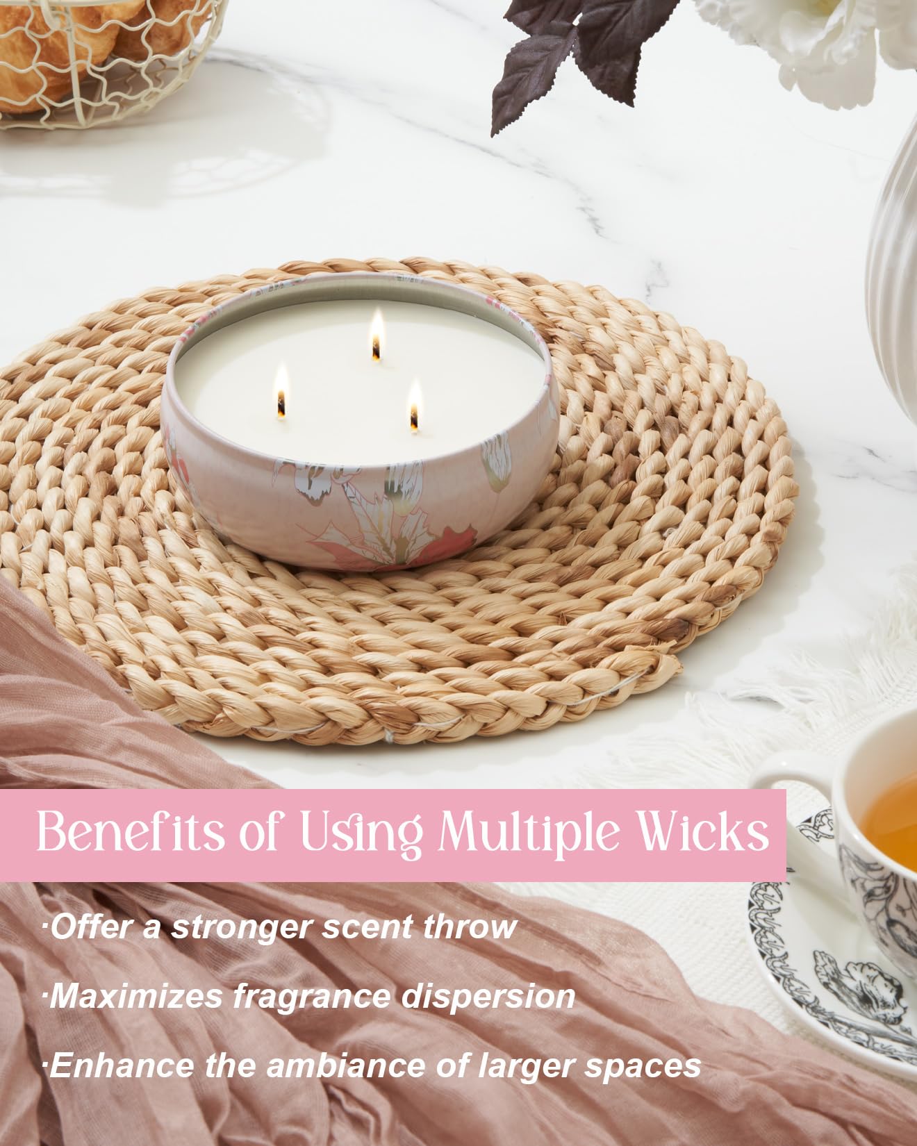 Elevate your home with our sustainable 3-wick scented candles. Hand-poured with American-grown soy and vegetable wax, each candle comes in a reusable tin and recycled packaging. Three self-trimming cotton wicks release stronger fragrance, filling larger spaces with an even, clean burn for up to 40–50 hours. Featuring exquisite floral tins with a modern vintage touch, they double as elegant décor and can be repurposed for jewelry or small keepsakes. Available in multiple scents, they bring warmth and soothing ambiance to every room.