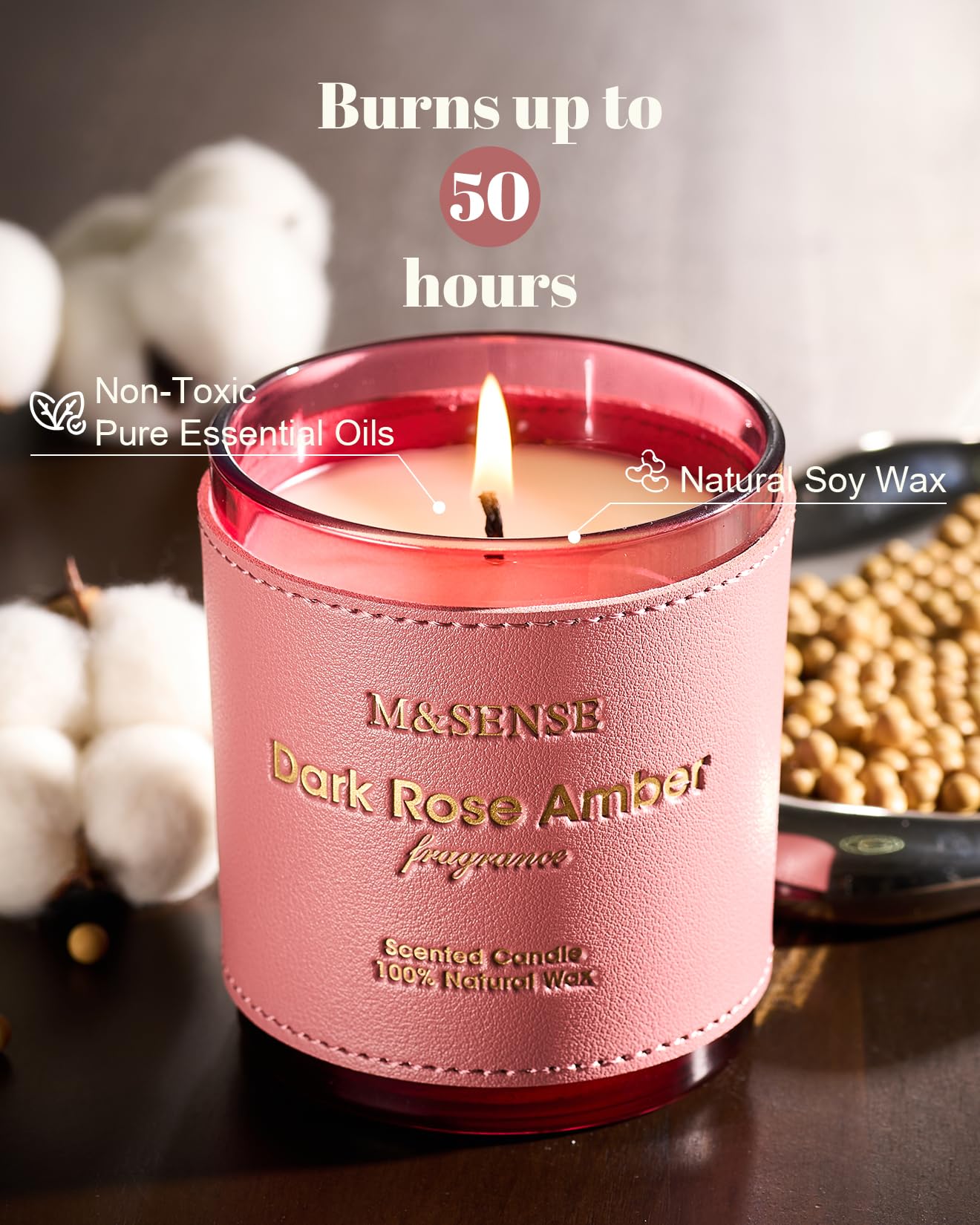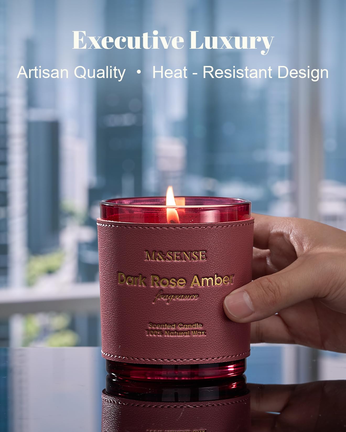 M&SENSE artisan candles unite craftsmanship and scent in perfect harmony. Each jar is wrapped in a hand-stitched leather sleeve and filled with premium 100% vegan soy wax for over 50 hours of clean, smoke-free burn. Curated by master perfumers, fragrances reveal layered notes that transform any space. The reusable glass jar and detachable leather cover offer sustainable style, while premium packaging makes every candle an unforgettable gift.
