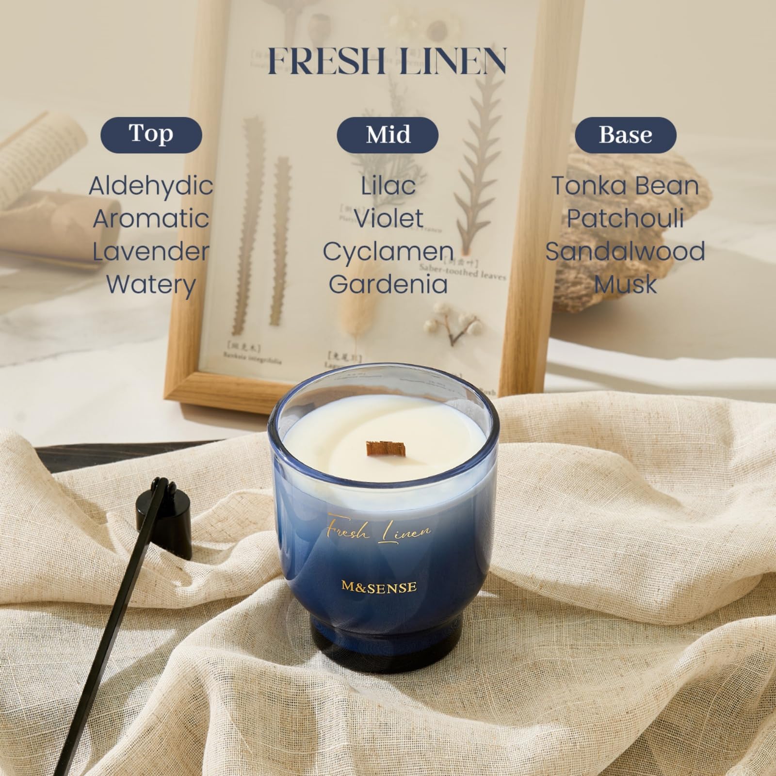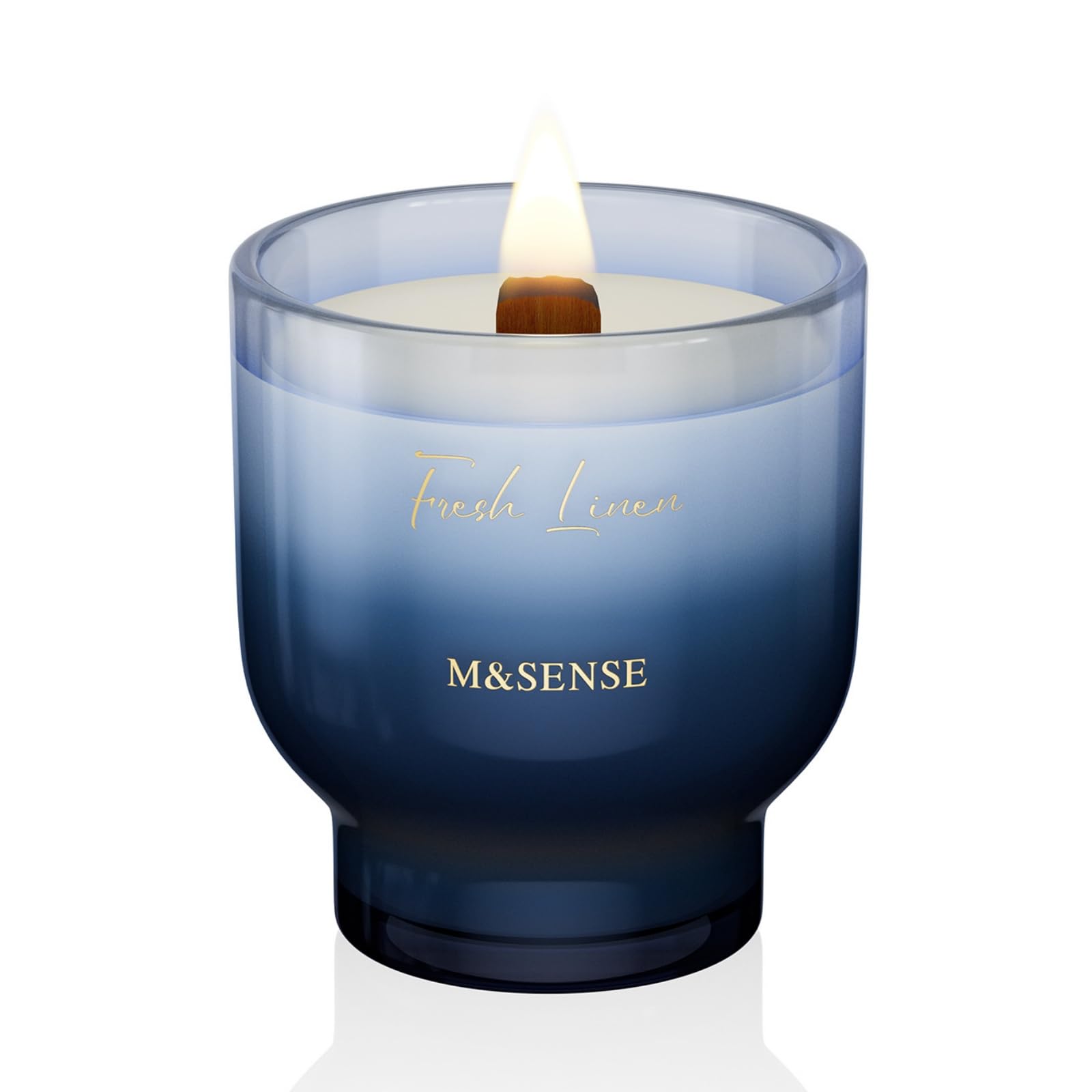 Experience the soothing ambiance of M&SENSE with our 9.88oz wood wick candle, infused with premium oils for a rich fragrance journey and up to 55 hours of burn time. Featuring authentic North American black cherry wooden wicks, it delivers a soft crackle reminiscent of a cozy campfire while enhancing fragrance throw for a long-lasting scent experience. Crafted from natural, paraffin-free, phthalate-free, and paraben-free wax, it ensures a safe and toxin-free burn for you and your loved ones. Elegantly packaged in reusable jars with sustainable wrapping, it’s perfect for gifting or elevating your home décor.