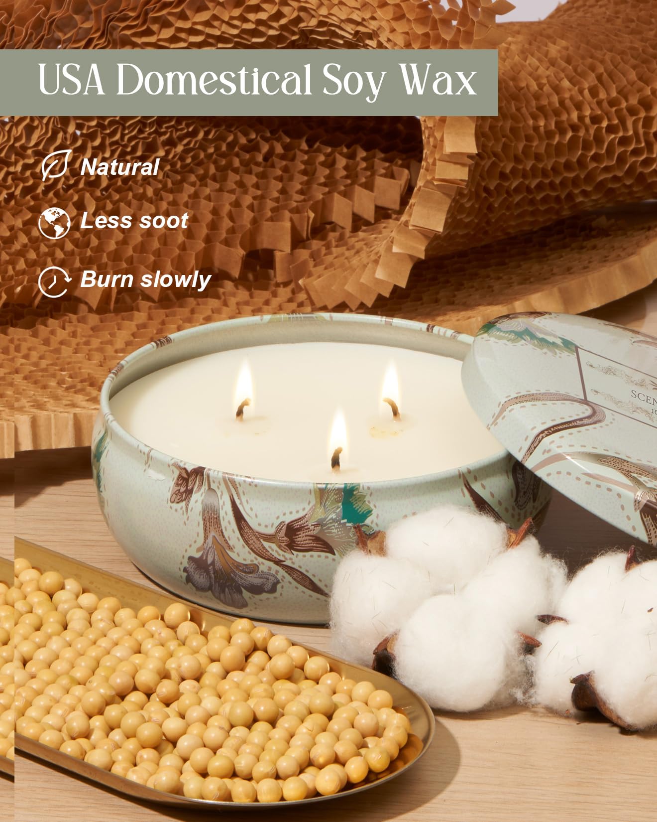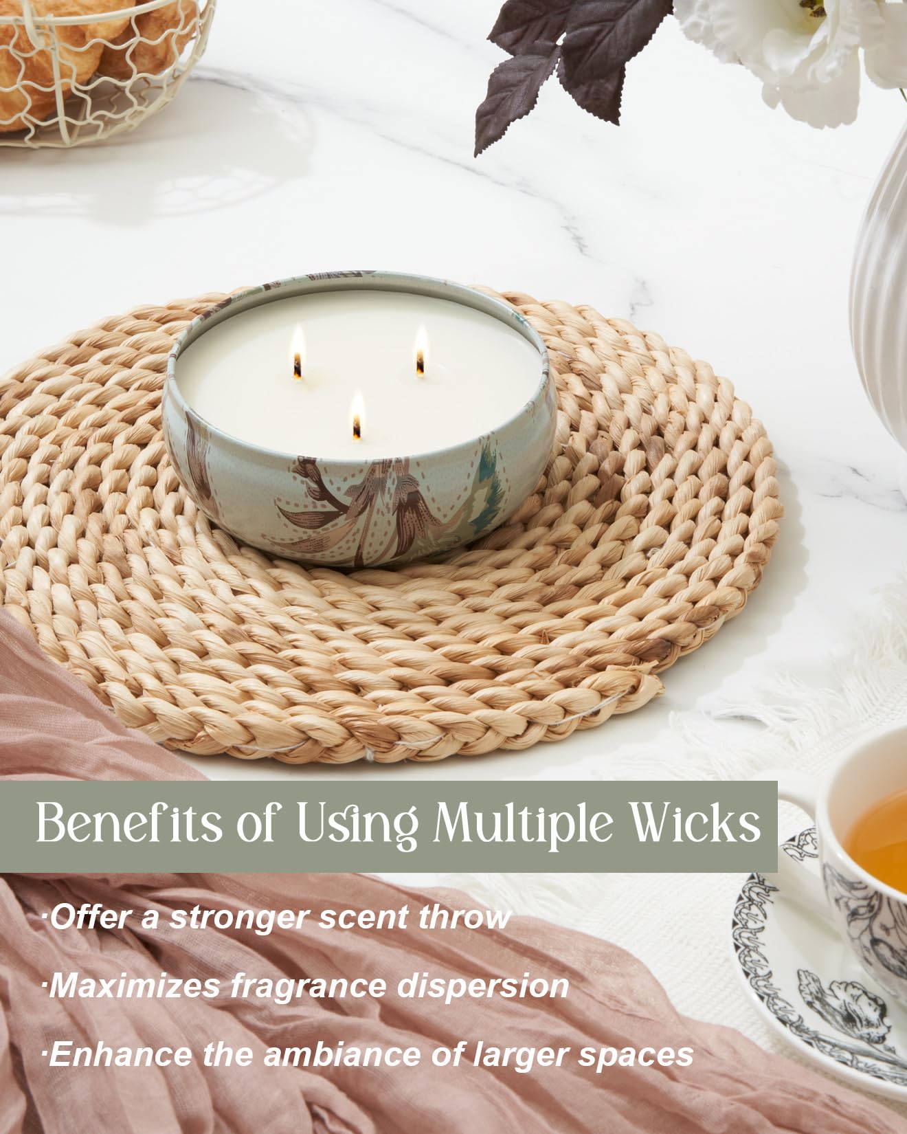 Elevate your home with our sustainable 3-wick scented candles. Hand-poured with American-grown soy and vegetable wax, each candle comes in a reusable tin and recycled packaging. Three self-trimming cotton wicks release stronger fragrance, filling larger spaces with an even, clean burn for up to 40–50 hours. Featuring exquisite floral tins with a modern vintage touch, they double as elegant décor and can be repurposed for jewelry or small keepsakes. Available in multiple scents, they bring warmth and soothing ambiance to every room.