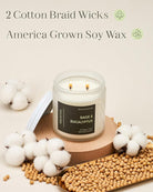 - Our candles are made with 100% soy wax formulated from premium soybeans and finest quality botanical essential oils—completely free of paraffin, synthetic fragrances, parabens, phthalates, and heavy metals. 100% Lead-free cotton wicks ensure a clean burn with minimal soot and no toxic emissions.