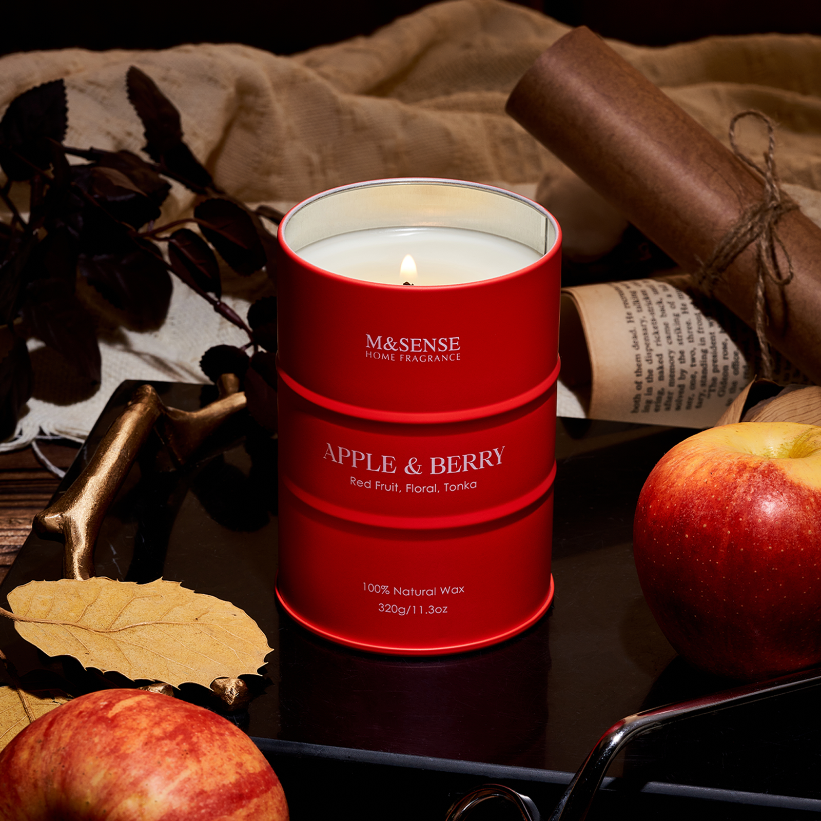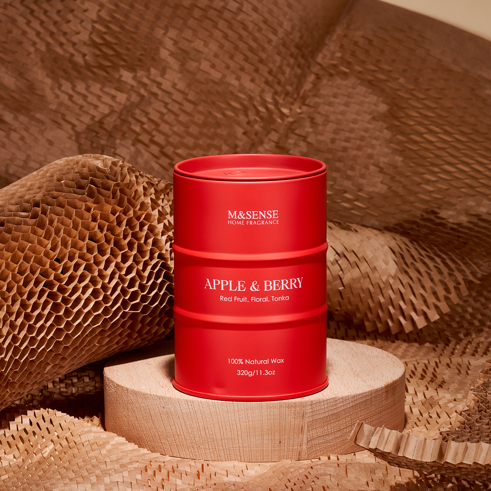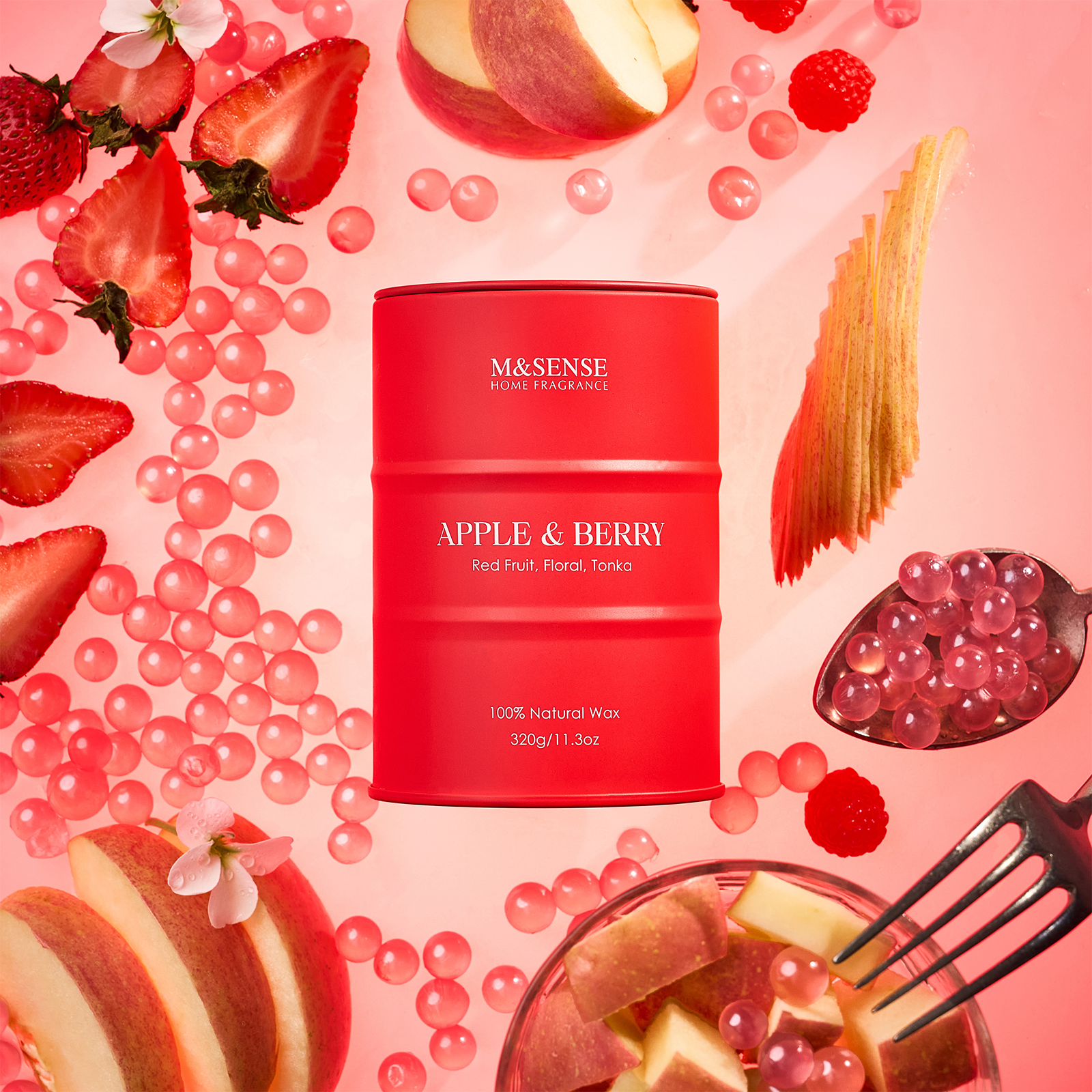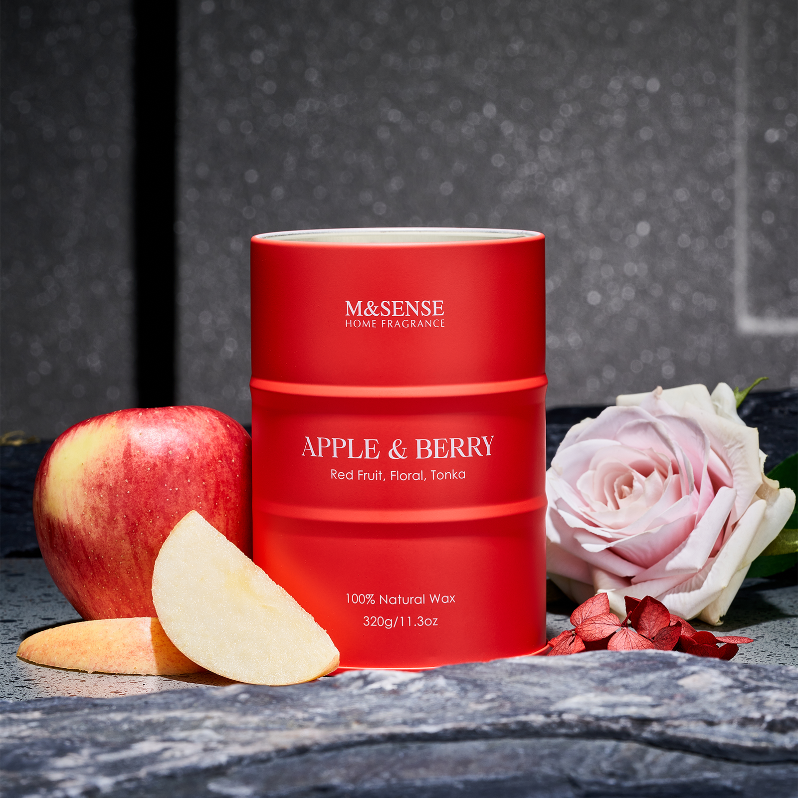 Sweet and cheerful, this M&Sense Scented Candle blends juicy red fruits, floral tonka, and a crisp apple twist. Nestled in a vibrant apple-red barrel, it adds a playful warmth to your space — bright, cozy, and full of everyday delight.