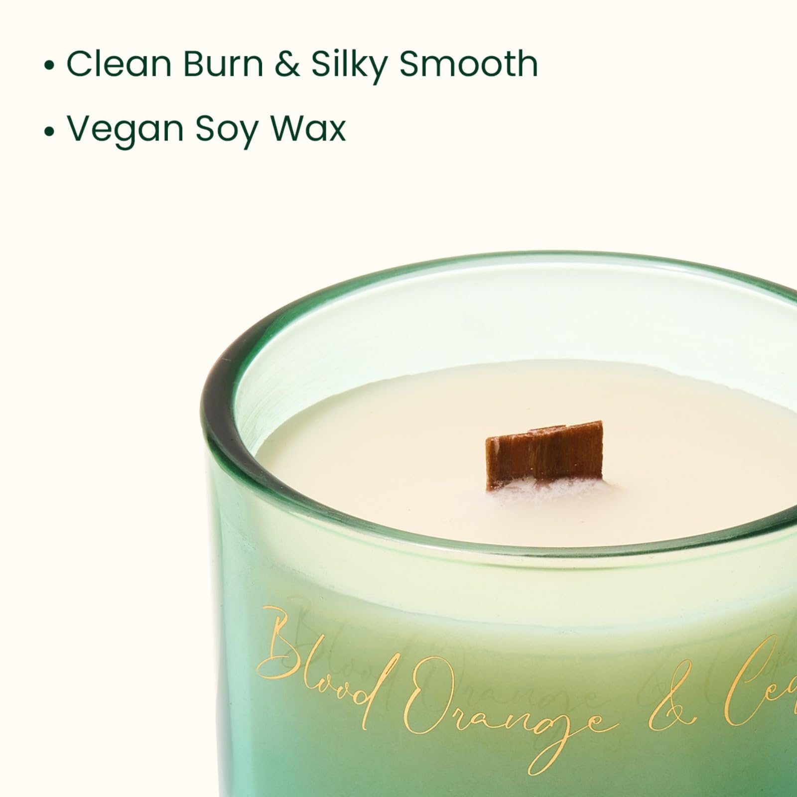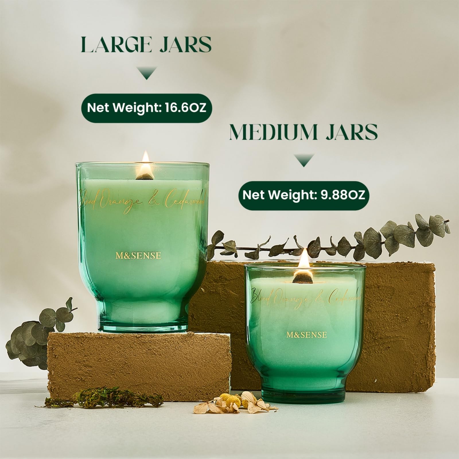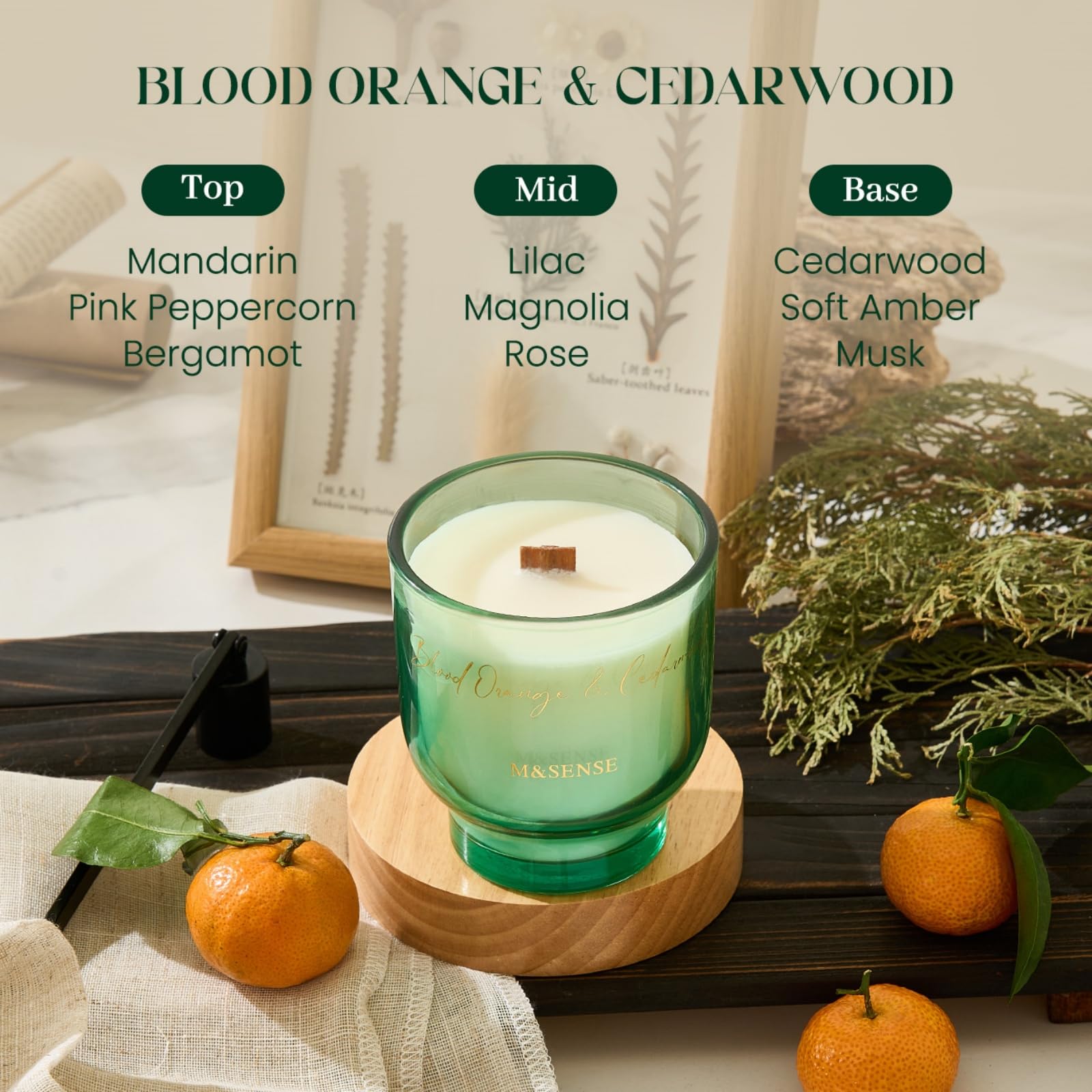 Experience the soothing ambiance of M&SENSE with our 9.88oz wood wick candle, infused with premium oils for a rich fragrance journey and up to 55 hours of burn time. Featuring authentic North American black cherry wooden wicks, it delivers a soft crackle reminiscent of a cozy campfire while enhancing fragrance throw for a long-lasting scent experience. Crafted from natural, paraffin-free, phthalate-free, and paraben-free wax, it ensures a safe and toxin-free burn for you and your loved ones. Elegantly packaged in reusable jars with sustainable wrapping, it’s perfect for gifting or elevating your home décor.