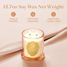 Discover 70 hours of fragrant bliss with the M&SENSE Elixir Emporium Series. This 12.7oz double-wick candle is hand-poured with natural soy wax and infused with premium oils, offering a clean, smokeless burn through lead-free HTP cotton wicks. Paraffin-, phthalate-, and paraben-free, it’s safe for a healthier home. Each gem-like jar with golden label adds elegance and can be reused as décor after burning. Available in luxurious scents like Sage Eucalyptus, Lavender Vanilla, and White Gardenia, it arrives beautifully packaged—an ideal gift for birthdays, anniversaries, Christmas, or Valentine’s Day. M&SENSE—where fragrance and timeless design meet.