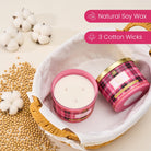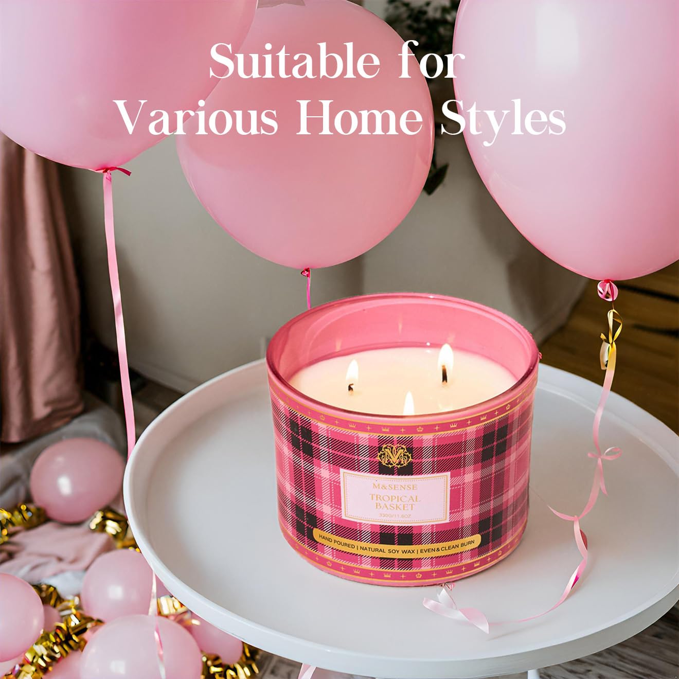 Our plaid 3-wick candle (330g / 11.64oz) is crafted from soy wax blended with high-melting-point palm oil, offering up to 65 hours of clean, steady burn with minimal soot. Infused with premium essential oils, it delivers a fresh, natural scent that is safe, non-toxic, and free from paraffin, phthalates, and parabens. Perfect for home décor, yoga, work, or relaxation, the elegant vessel can be reused long after the candle burns out. With refined design and multiple fragrances, it makes an ideal gift for birthdays, holidays, or daily indulgence. Since 2009, M&Sense has created candles that blend natural waxes, fine scents, and timeless style.