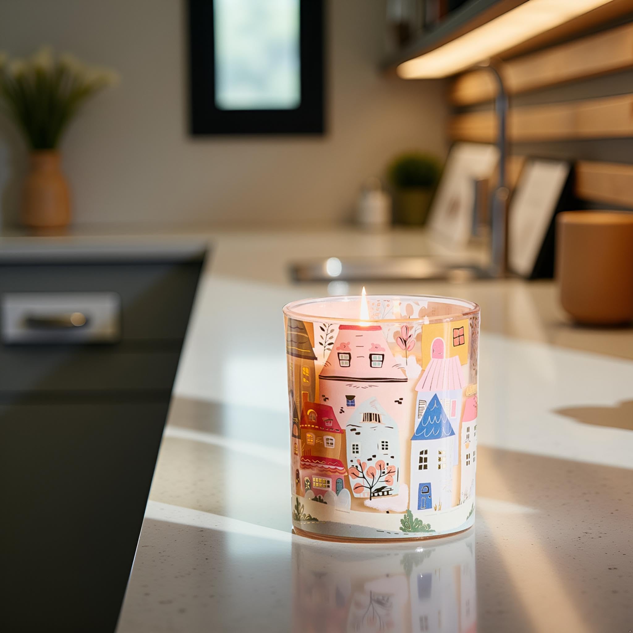 M&SENSE CharmArch Candles reimagine urban charm through playful, hand-drawn architecture. Each bottle depicts scenes from a fictional town—soft gradients and sketchy lines evoke a nostalgic atmosphere. When lit, the soothing fragrance whispers tales of home, blending seamlessly with your decor. These artistic creations make perfect souvenirs for travelers or tokens of appreciation for creatives.