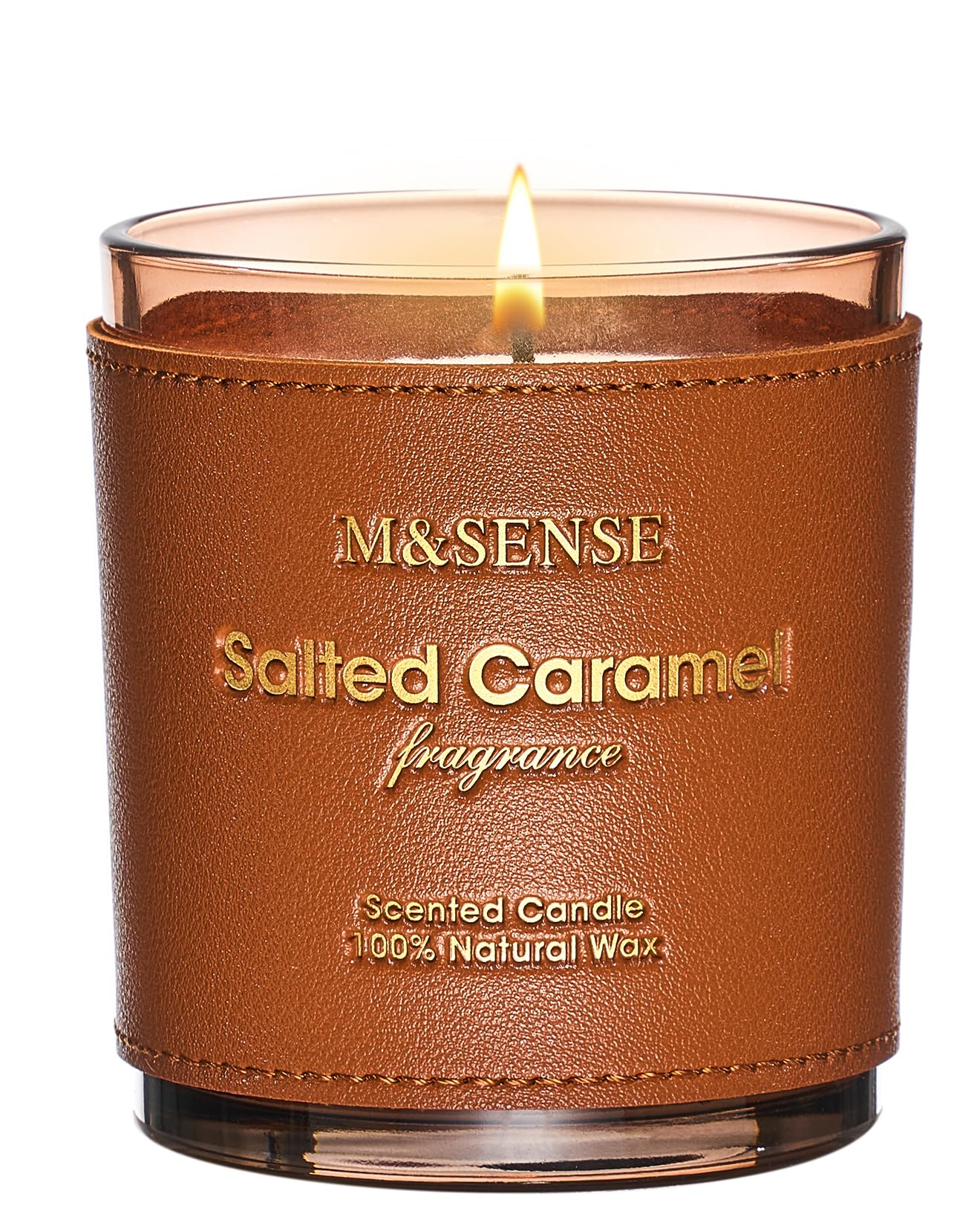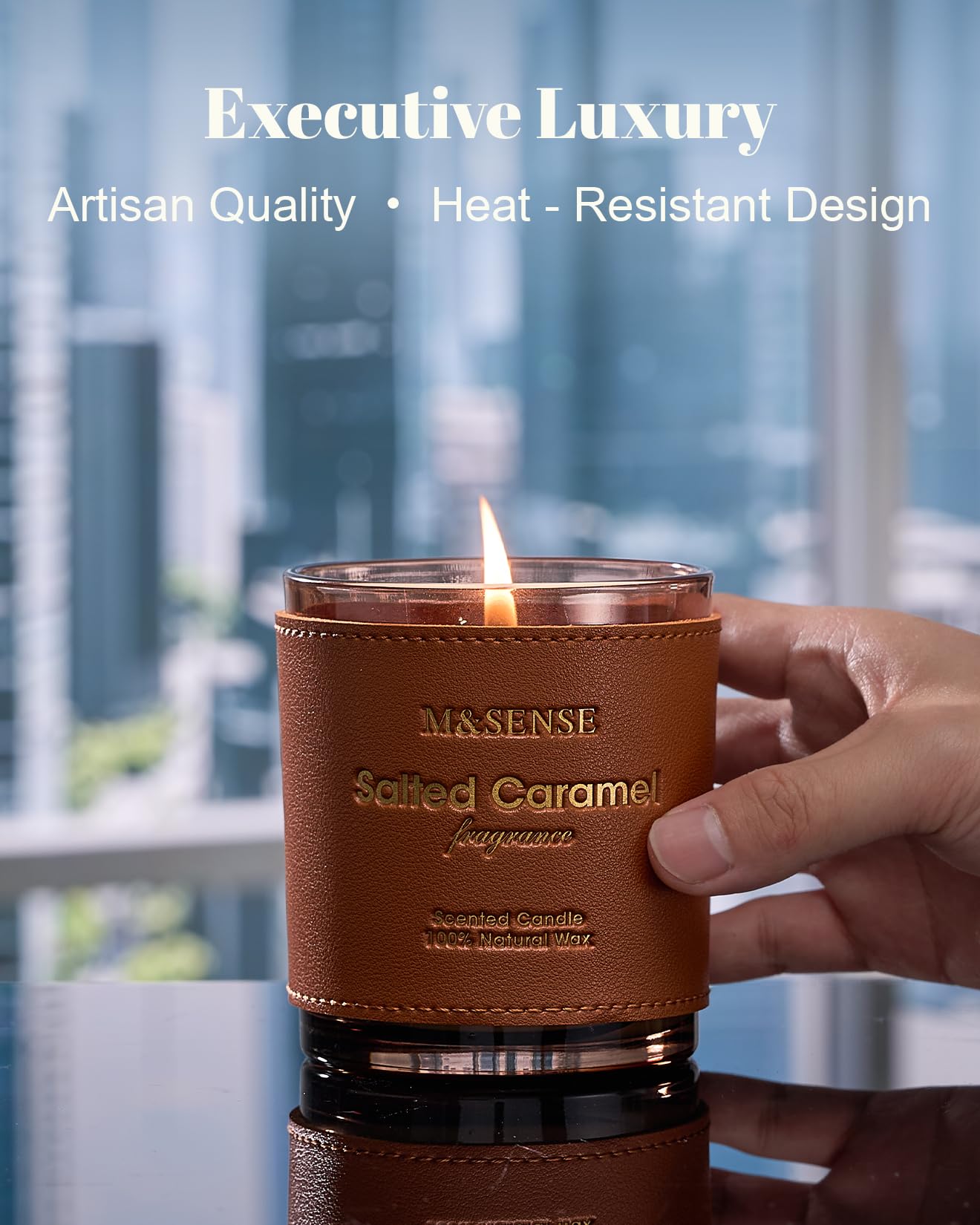 M&SENSE artisan candles unite craftsmanship and scent in perfect harmony. Each jar is wrapped in a hand-stitched leather sleeve and filled with premium 100% vegan soy wax for over 50 hours of clean, smoke-free burn. Curated by master perfumers, fragrances reveal layered notes that transform any space. The reusable glass jar and detachable leather cover offer sustainable style, while premium packaging makes every candle an unforgettable gift.