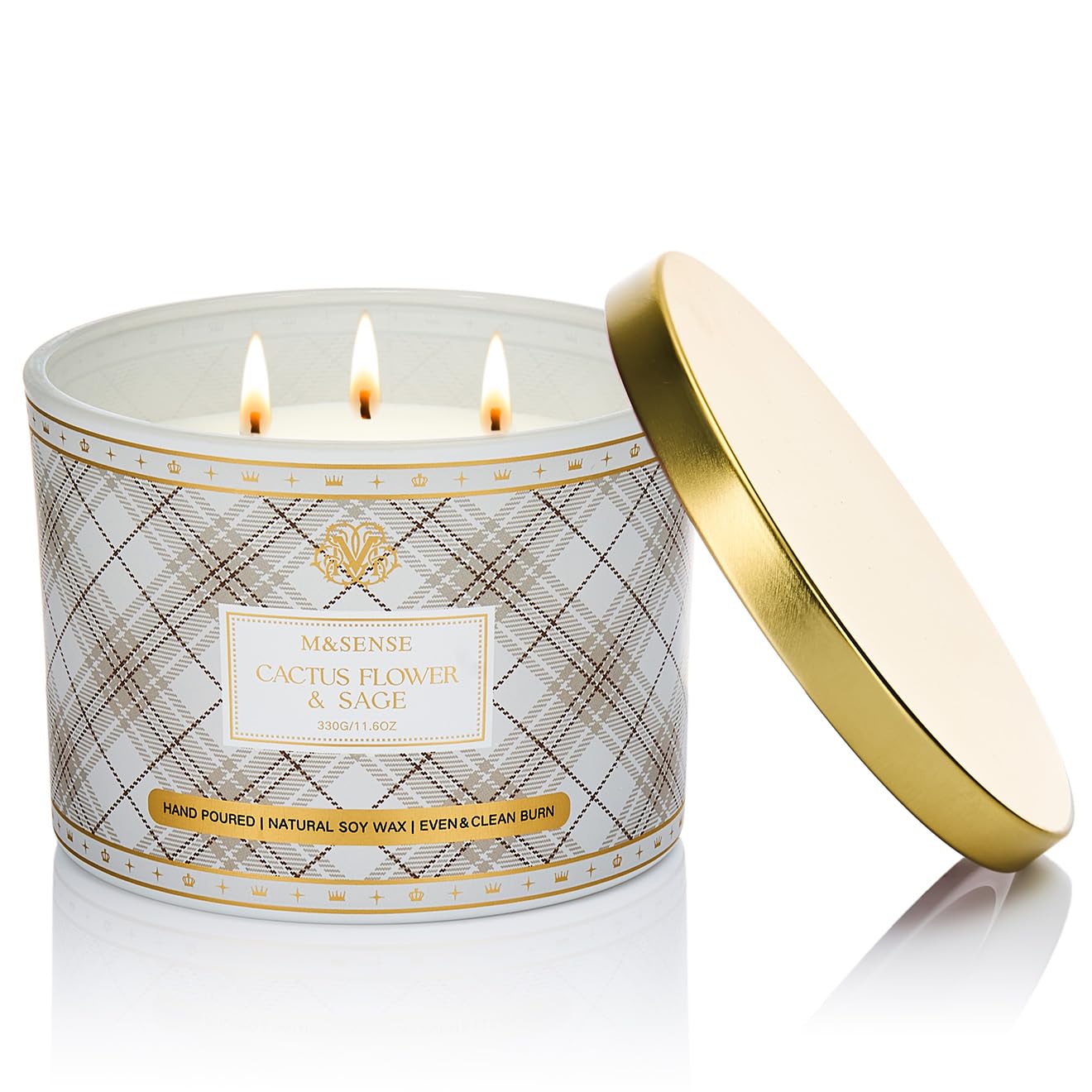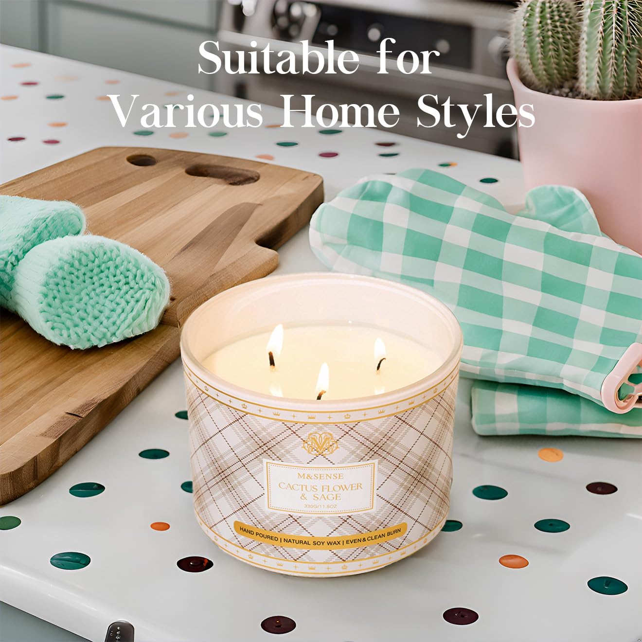 Our plaid 3-wick candle (330g / 11.64oz) is crafted from soy wax blended with high-melting-point palm oil, offering up to 65 hours of clean, steady burn with minimal soot. Infused with premium essential oils, it delivers a fresh, natural scent that is safe, non-toxic, and free from paraffin, phthalates, and parabens. Perfect for home décor, yoga, work, or relaxation, the elegant vessel can be reused long after the candle burns out. With refined design and multiple fragrances, it makes an ideal gift for birthdays, holidays, or daily indulgence. Since 2009, M&Sense has created candles that blend natural waxes, fine scents, and timeless style.