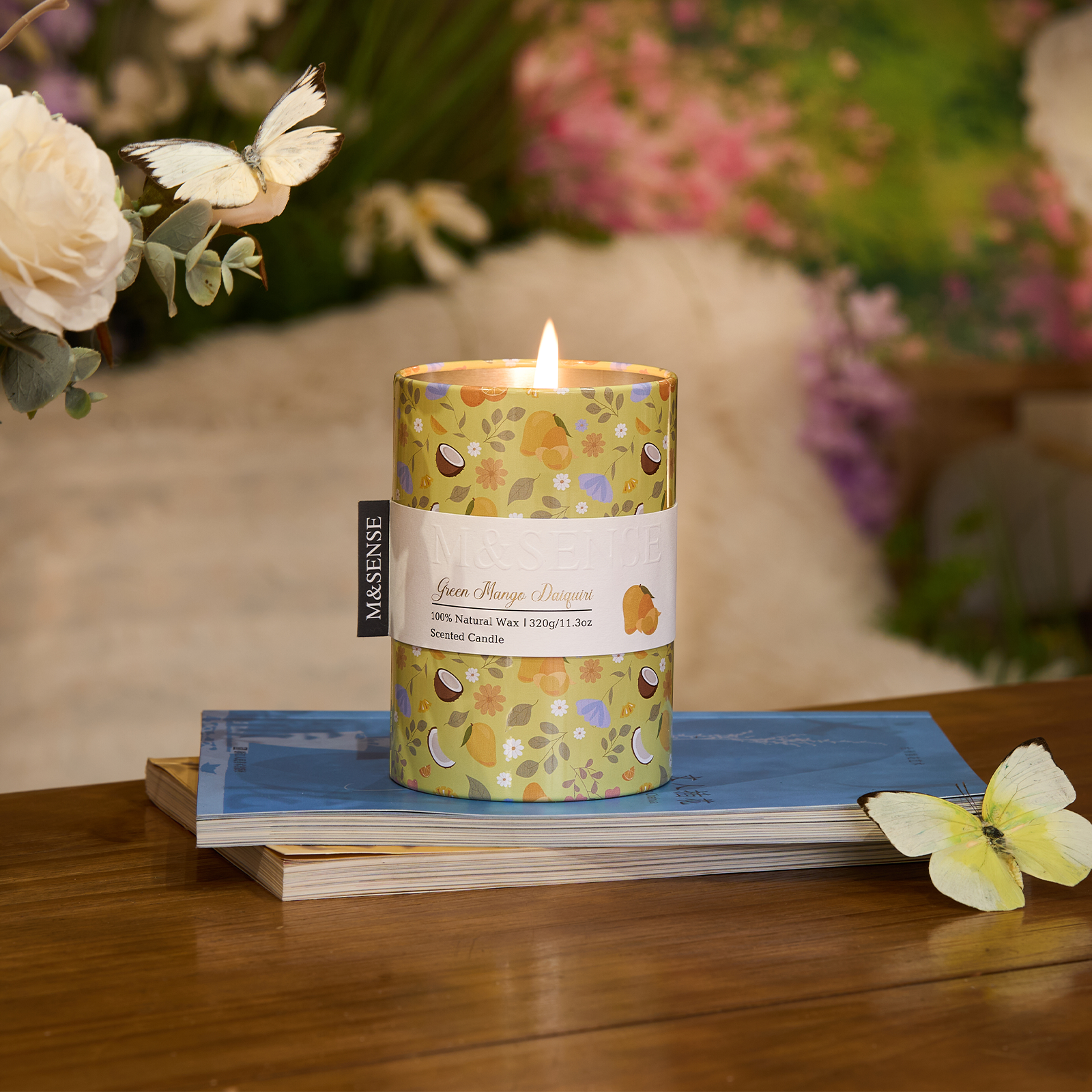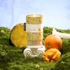 Bright lemon and juicy pineapple burst with tropical sweetness, while fresh green notes add a crisp, natural lift. Ripe mango weaves through, creating a vibrant summer breeze in every breath. Light this scent and let your space come alive with sunshine and fresh greenery.