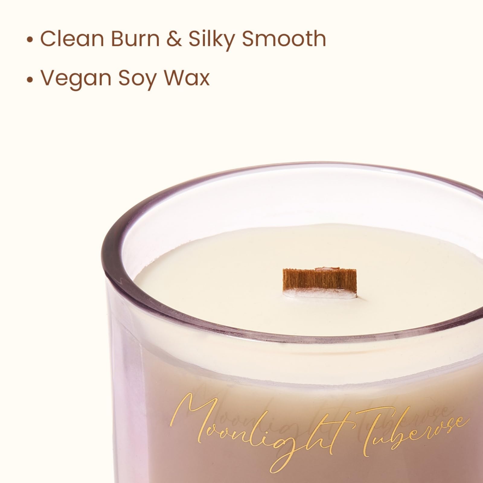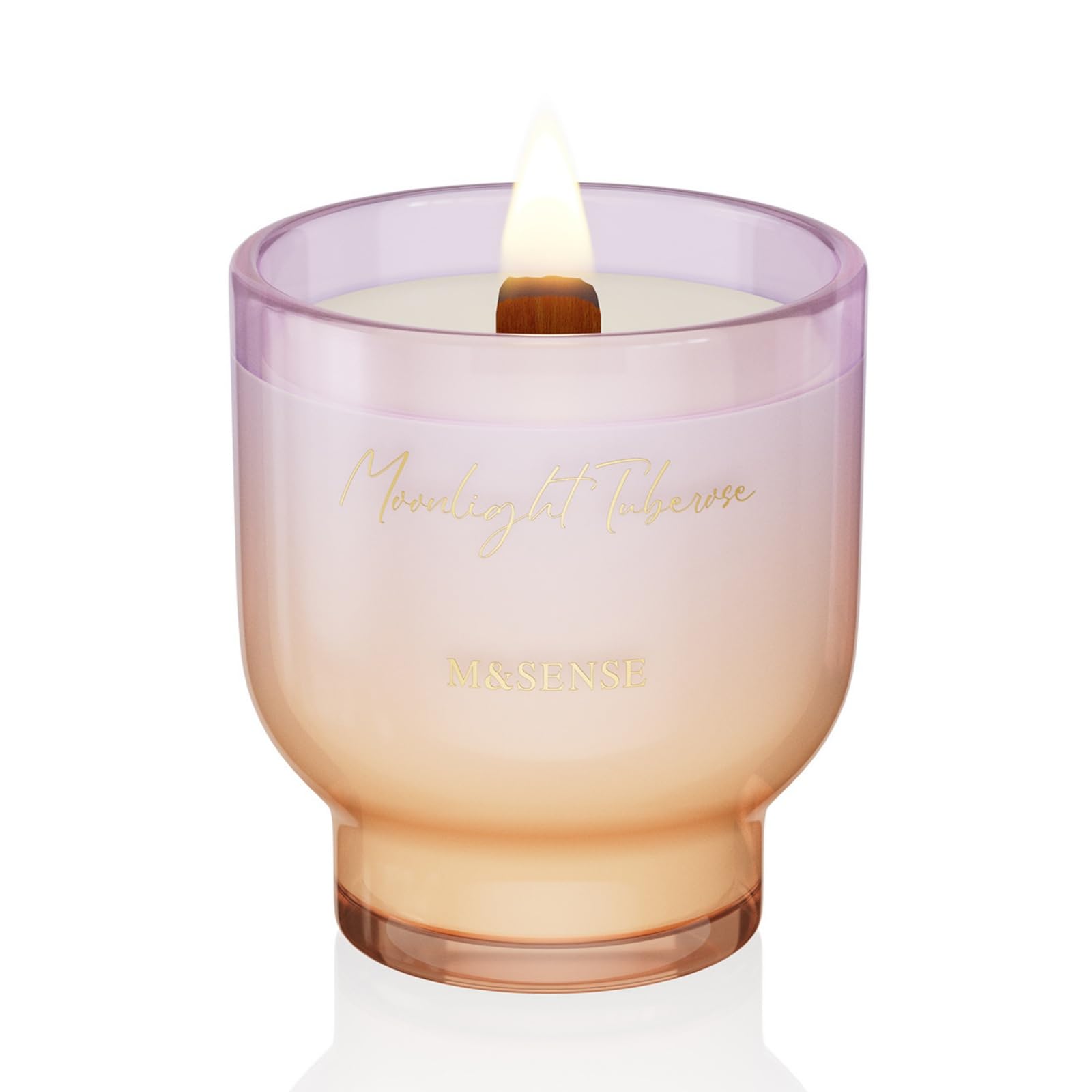 Experience the soothing ambiance of M&SENSE with our 9.88oz wood wick candle, infused with premium oils for a rich fragrance journey and up to 55 hours of burn time. Featuring authentic North American black cherry wooden wicks, it delivers a soft crackle reminiscent of a cozy campfire while enhancing fragrance throw for a long-lasting scent experience. Crafted from natural, paraffin-free, phthalate-free, and paraben-free wax, it ensures a safe and toxin-free burn for you and your loved ones. Elegantly packaged in reusable jars with sustainable wrapping, it’s perfect for gifting or elevating your home décor.