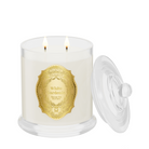 Dew-kissed gardenia blooms unfold under morning light, their creamy petals veined with dewy green stems. Night-blooming jasmine weaves through honeysuckle vines, dripping golden nectar onto moss-kissed earth. Twin wicks conjure a sunlit garden where floral opulence meets crisp verdant breath—a silent symphony of petal, stem, and light flooding every corner with double radiance.