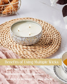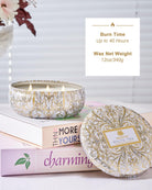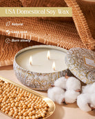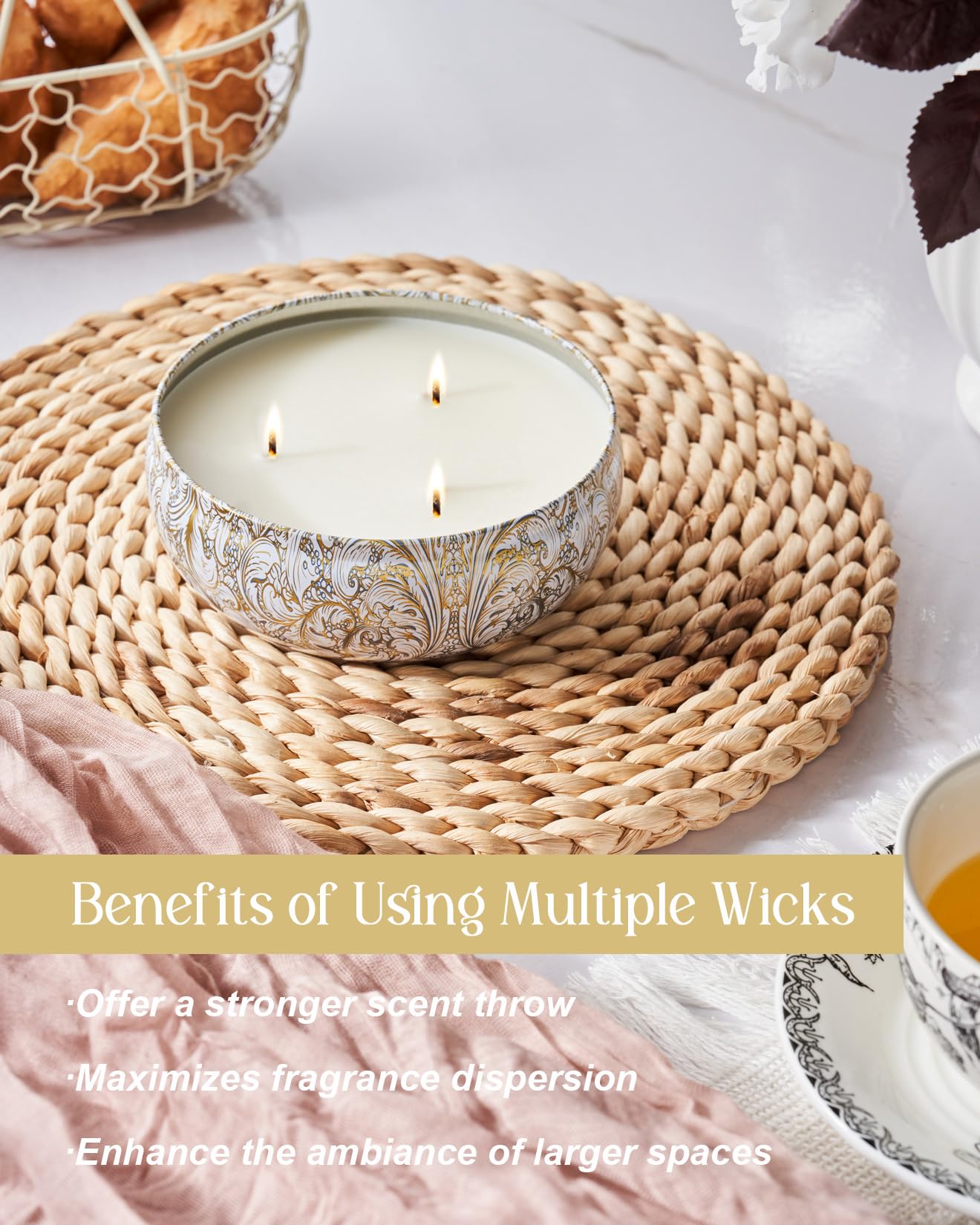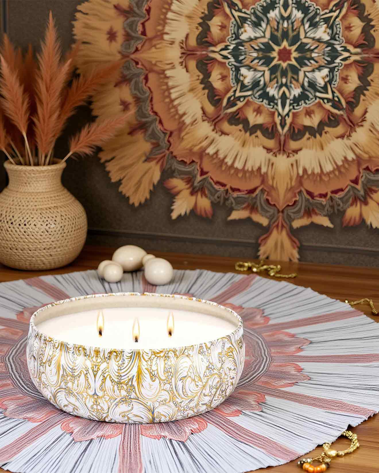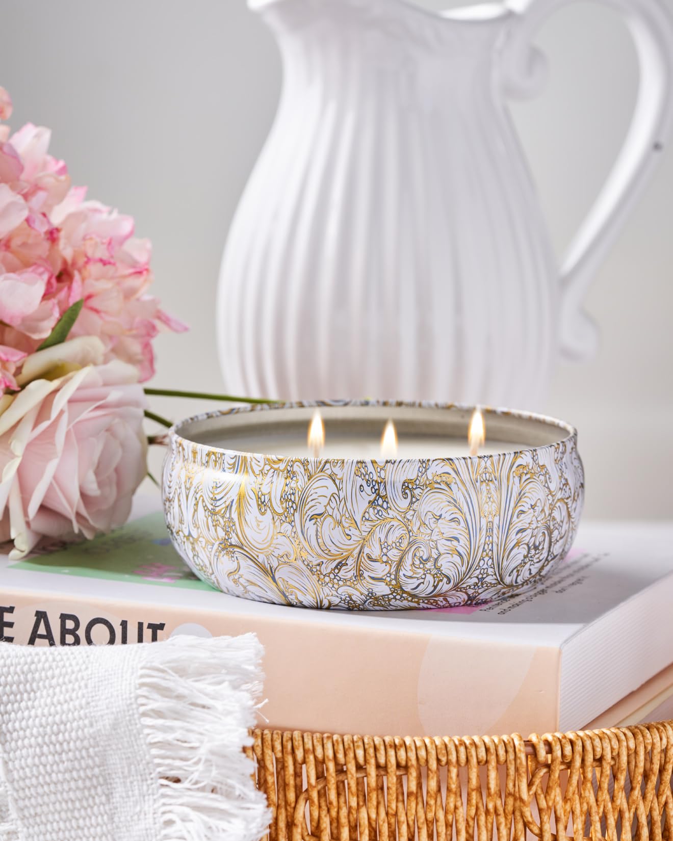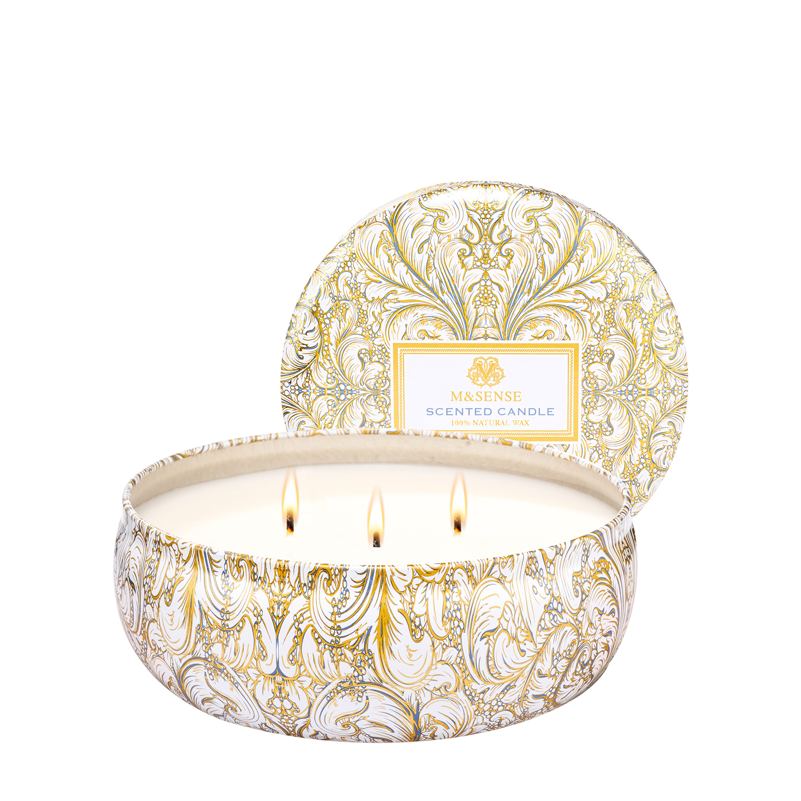Elevate your home with our sustainable 3-wick scented candles. Hand-poured with American-grown soy and vegetable wax, each candle comes in a reusable tin and recycled packaging. Three self-trimming cotton wicks release stronger fragrance, filling larger spaces with an even, clean burn for up to 40–50 hours. Featuring exquisite floral tins with a modern vintage touch, they double as elegant décor and can be repurposed for jewelry or small keepsakes. Available in multiple scents, they bring warmth and soothing ambiance to every room.