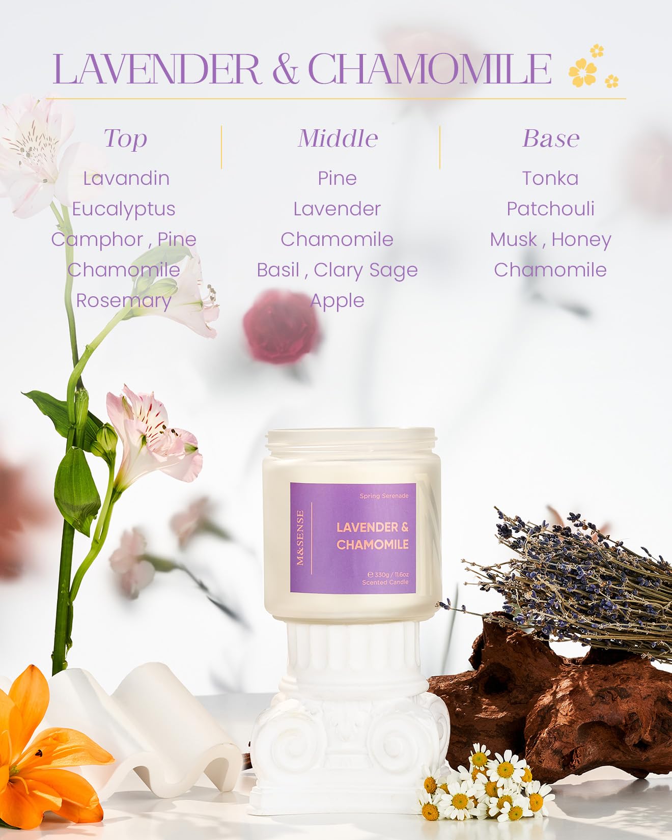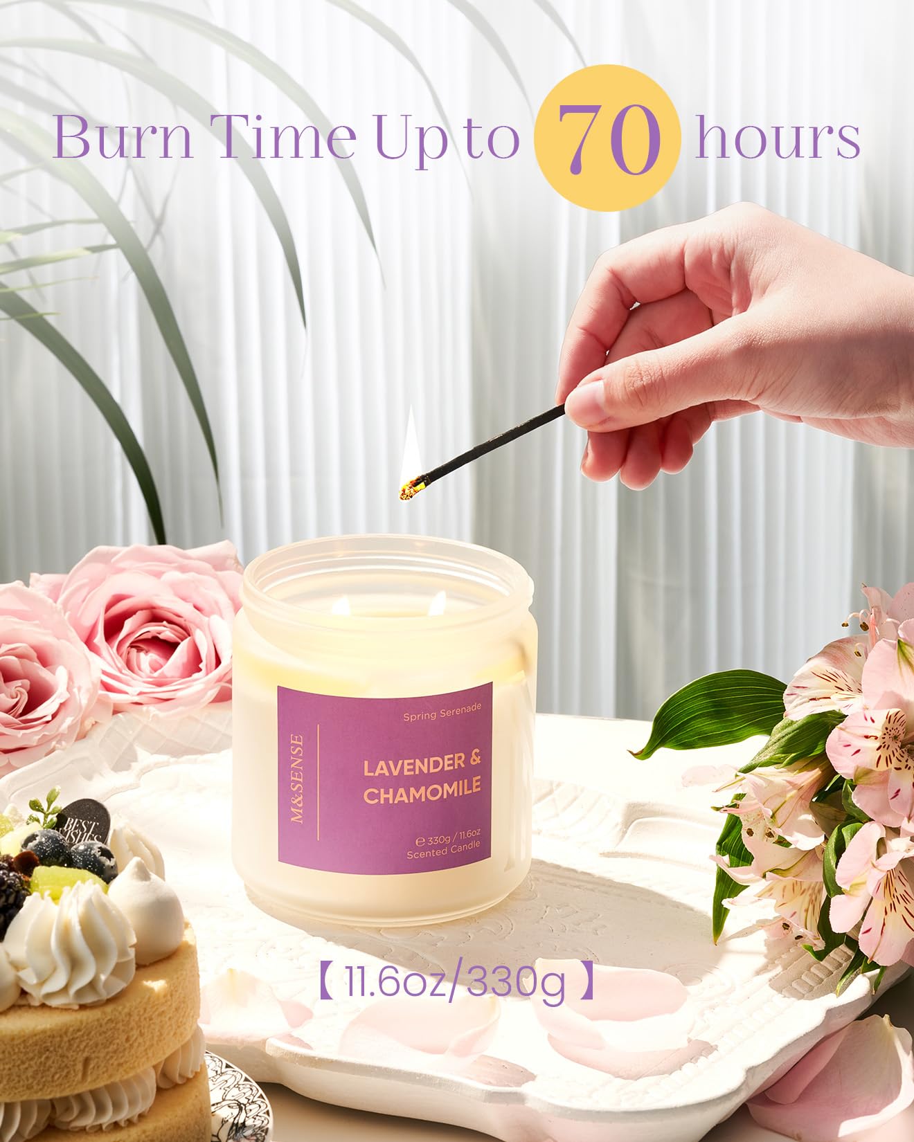 M&SENSE scented candles are crafted from a premium blend of American-grown soy and vegetable wax with double unbleached cotton wicks for a clean, even burn lasting up to 70 hours. Housed in a reusable glass jar and packaged sustainably, they burn smoke-free with no harmful toxins. Inspired by spring, the fragrances blend fresh florals and light, airy notes, enriched with natural essential oils for a gentle yet refreshing scent. Perfect for everyday relaxation, home décor, or thoughtful gifting, these candles bring a sense of calm and seasonal renewal to any space.