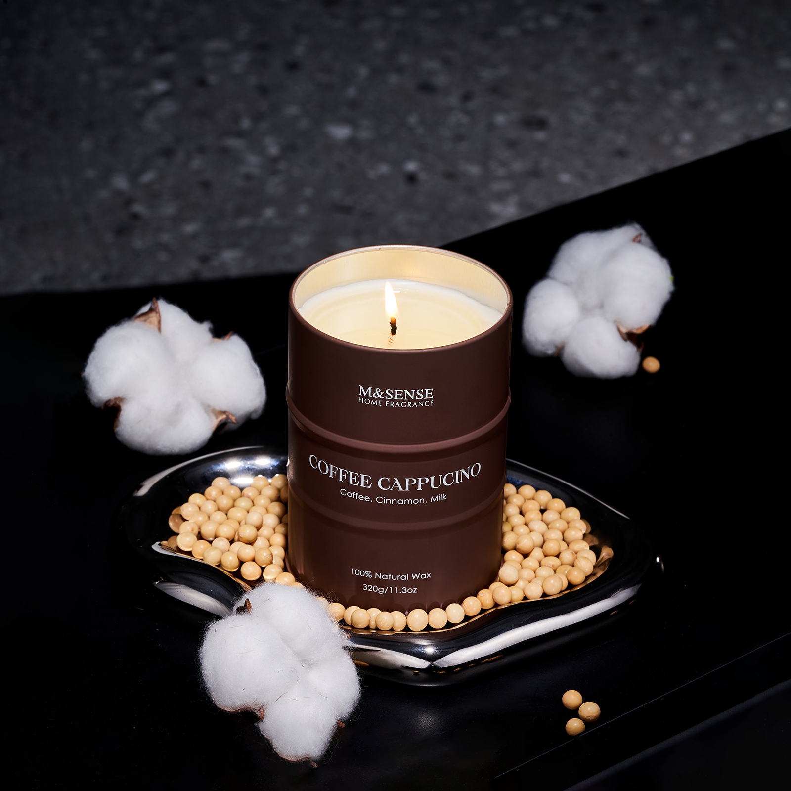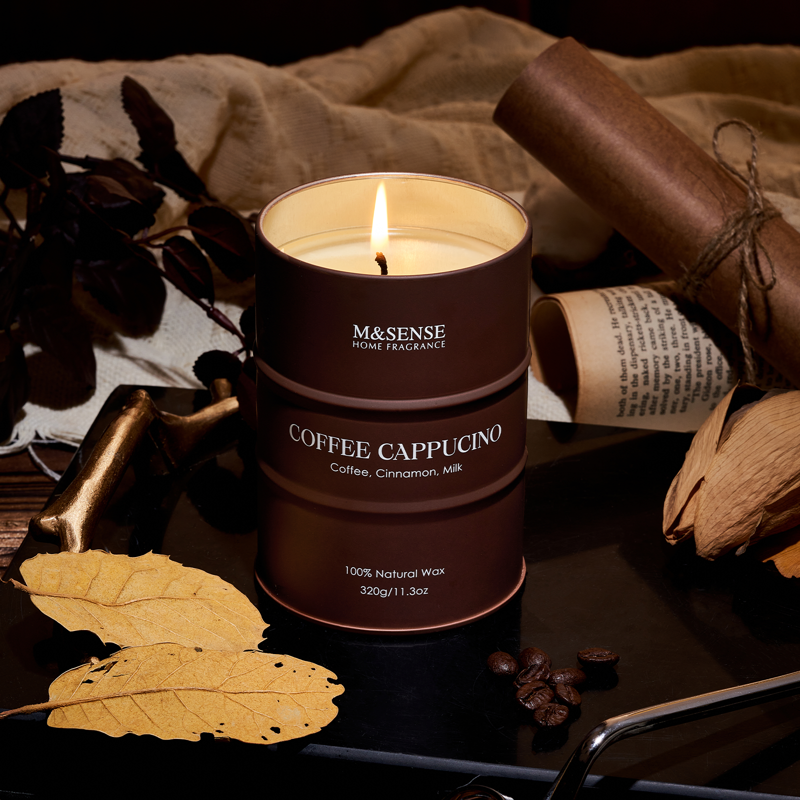 Cozy and aromatic, this M&Sense Scented Candle brews rich coffee with a swirl of warm cinnamon and creamy milk. Encased in a deep coffee-brown barrel, it transforms any room into your favorite café corner — comforting, energizing, and deliciously familiar.