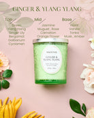 Ginger’s warm spice spreads with a crisp kick, as ylang-ylang and jasmine’s soft petal scents wrap around—like a tropical afternoon bloom cluster swayed by breeze. Vanilla’s creaminess anchors below, mellowing the spice into warmth, like sun-soaked flowering vines drooping, heat holding a dense, soft sweetness.