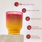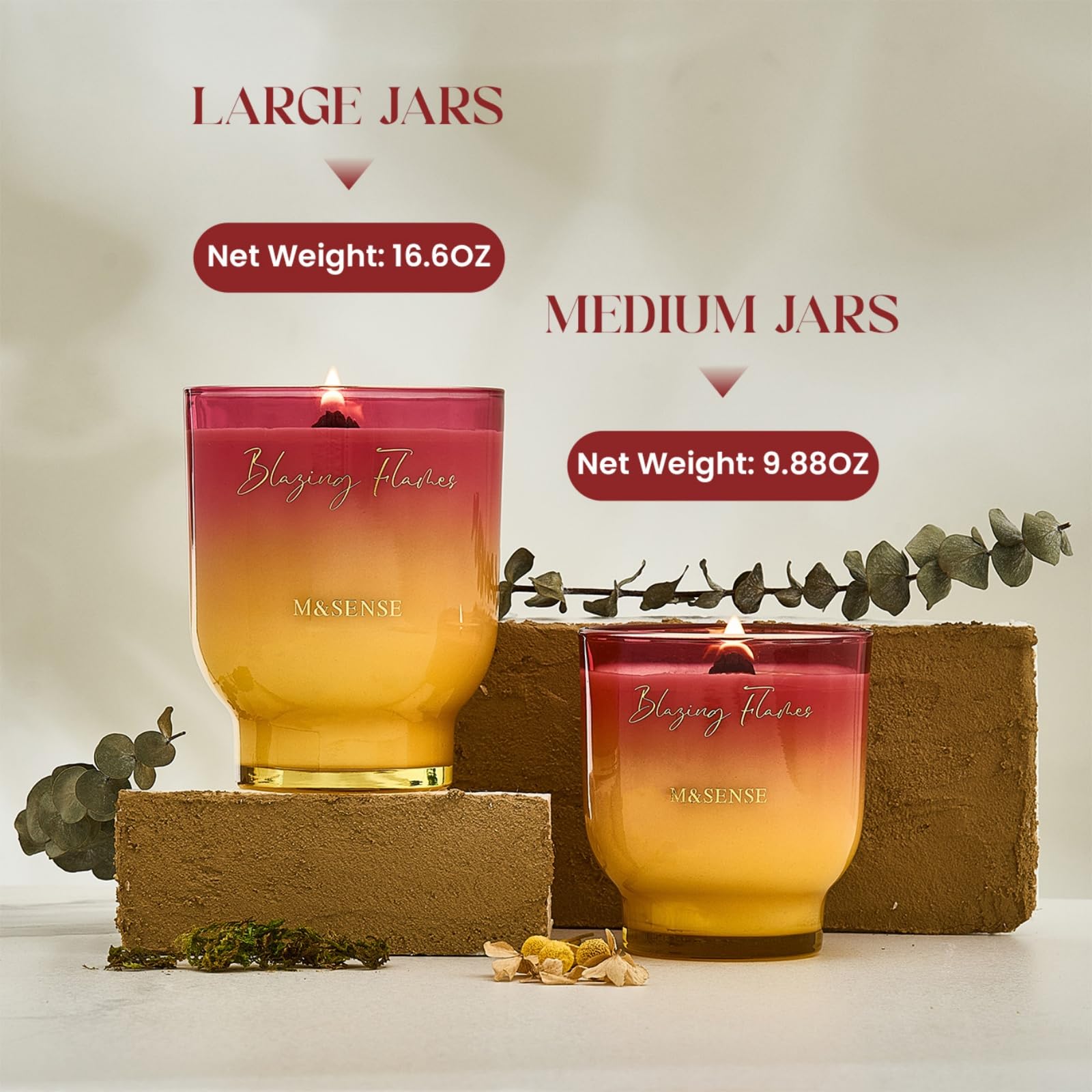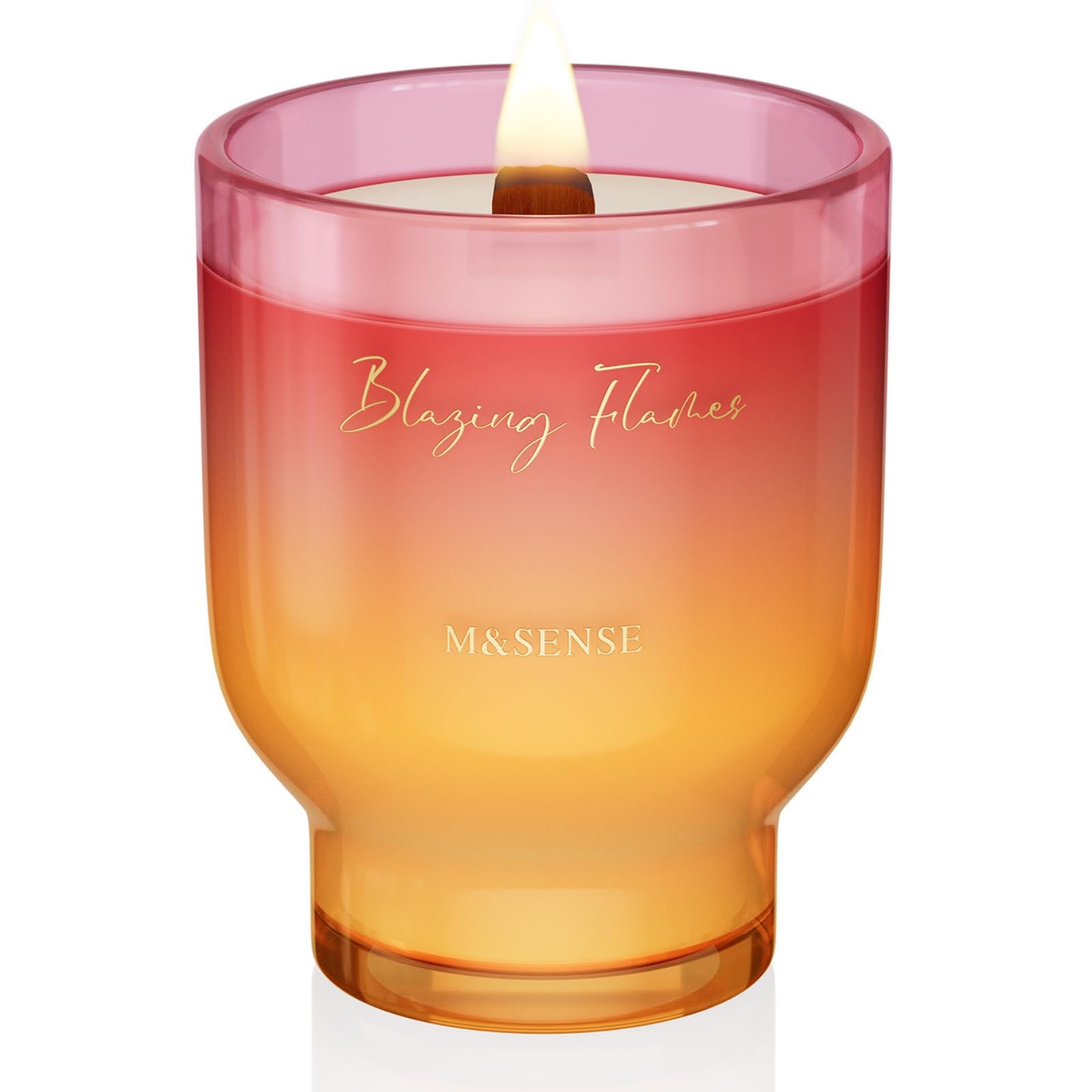 Experience the warmth of M&SENSE with our 16.6oz wood wick candle, infused with premium oils for a rich fragrance journey and up to 95 hours of burn time. The natural North American black cherry wooden wick produces a soothing crackle, reminiscent of a campfire, while enhancing fragrance throw for a long-lasting aromatic experience. Made from natural wax and free of paraffin, phthalates, and parabens, it provides a safe, toxin-free burn for your home. Beautifully packaged in a reusable jar with sustainable wrapping, it’s ideal for gifting or adding an elegant accent to any space.