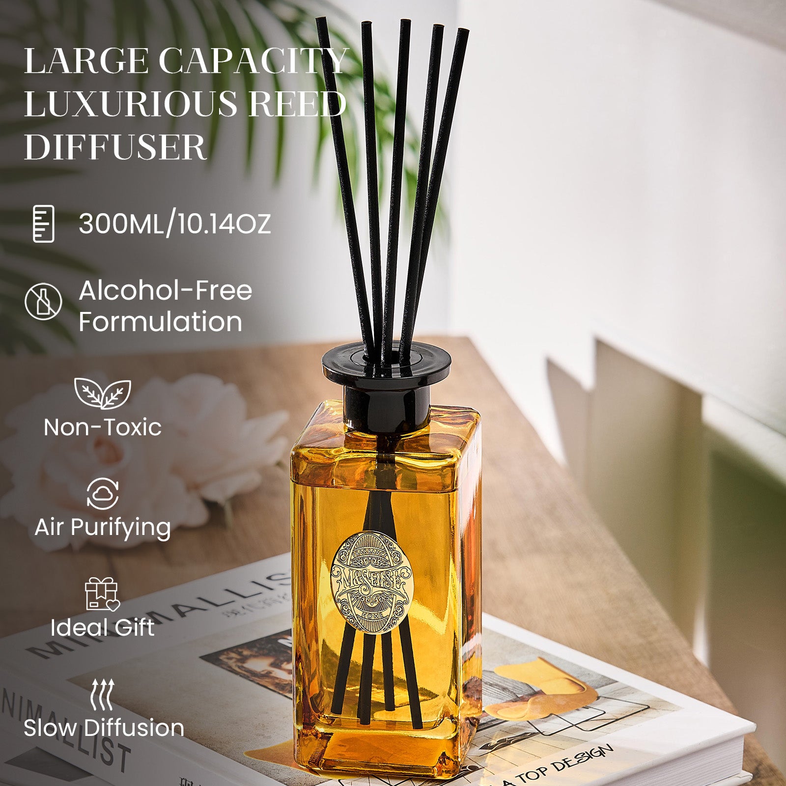 M&SENSE Diffusers provide a 300ml capacity for effortless, long-lasting fragrance. The alcohol-free formula ensures clean, safe diffusion, reducing the need for frequent refills. Designed for sustainability, they operate without electricity—just insert the reeds and enjoy up to 60 days of ambient scent. With air-purifying properties, they neutralize odors naturally while enhancing your space. Perfect for eco-conscious individuals, these diffusers blend into any interior, promoting green living with every breath.