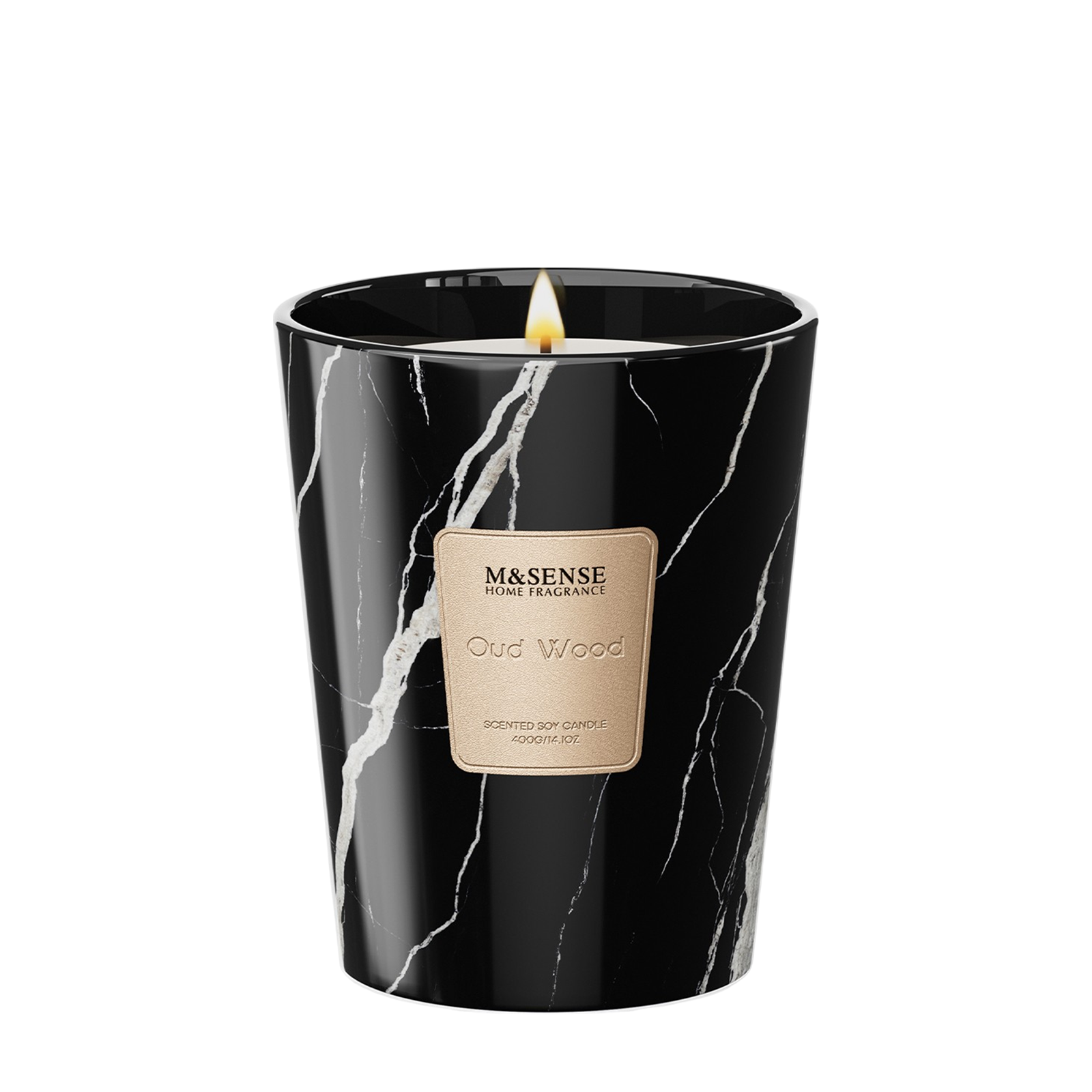 As the flame flickers to life, crisp bergamot cuts through the air—fresh, citrusy, and bright like morning light through linen curtains. Beneath it, the ancient richness of oud wood unfolds—smoky, resinous, and warm, grounding the space in quiet luxury. A soft trace of calamus adds a green, spicy undertone, like a hidden garden after rain.