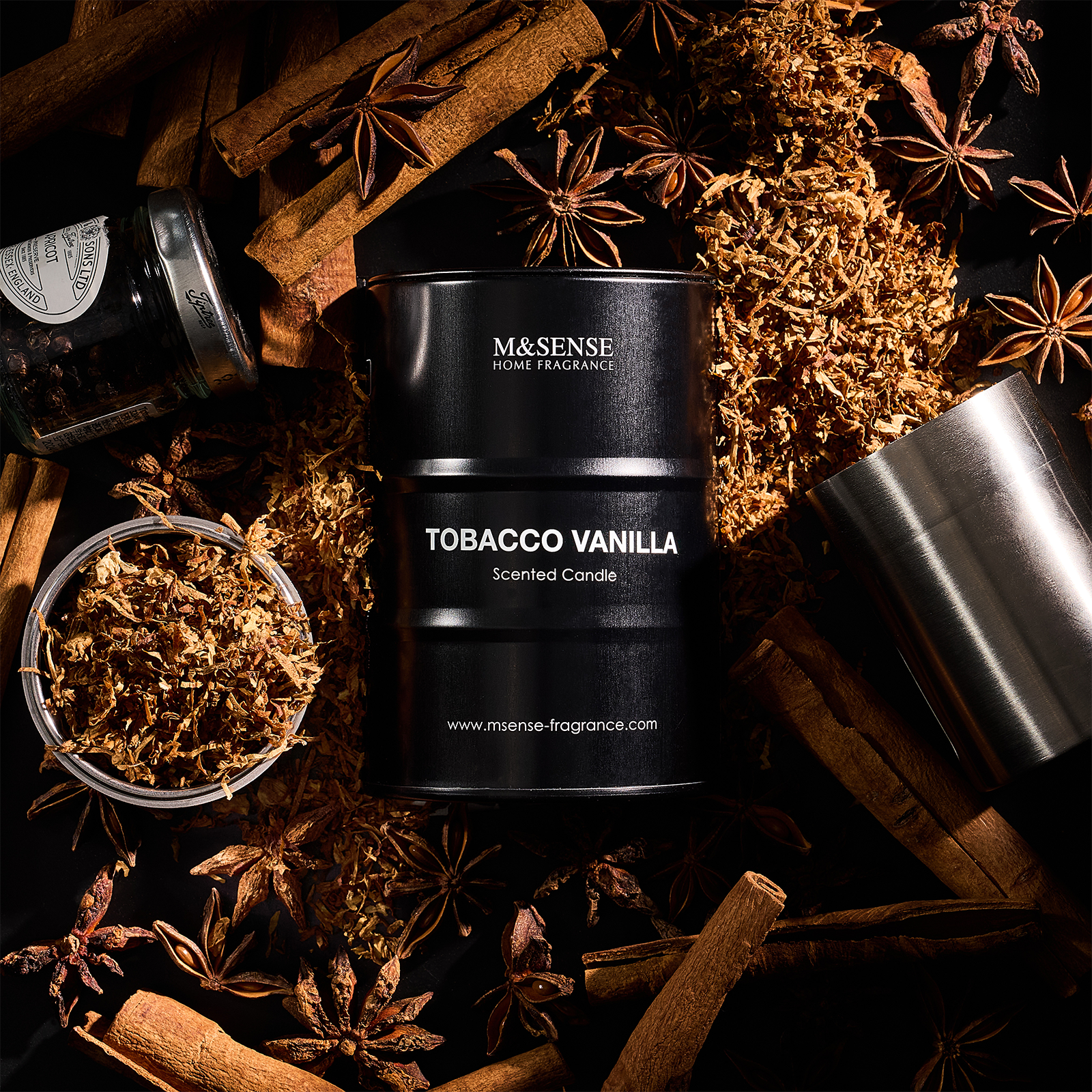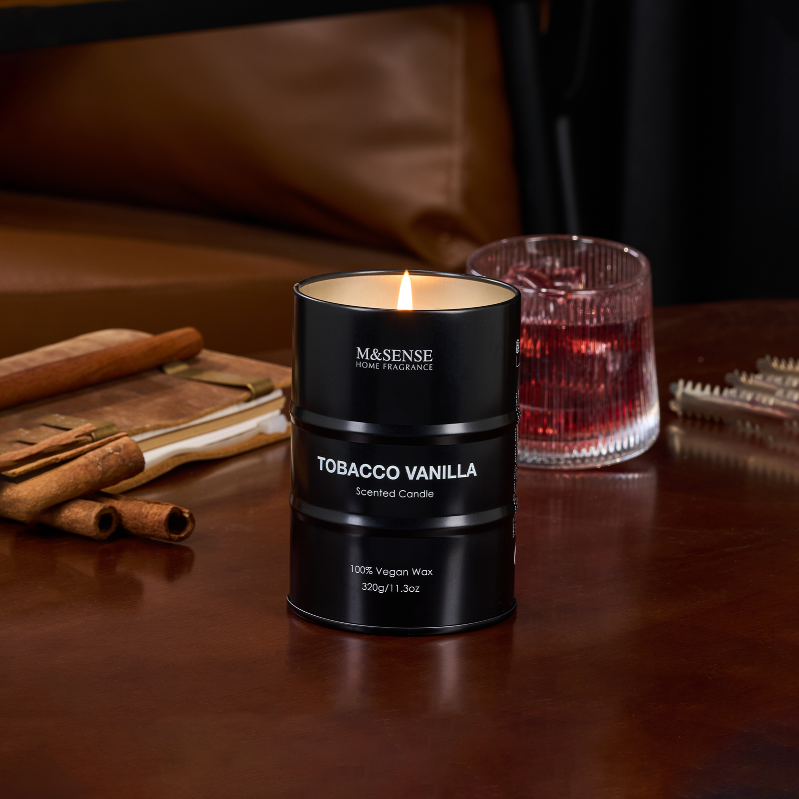 Warm and inviting, this M&Sense Scented Candle combines spicy cinnamon with rich tobacco and a creamy hint of vanilla. Housed in a sleek black barrel, it creates an atmosphere of timeless sophistication and cozy allure — perfect for evenings that call for quiet luxury.