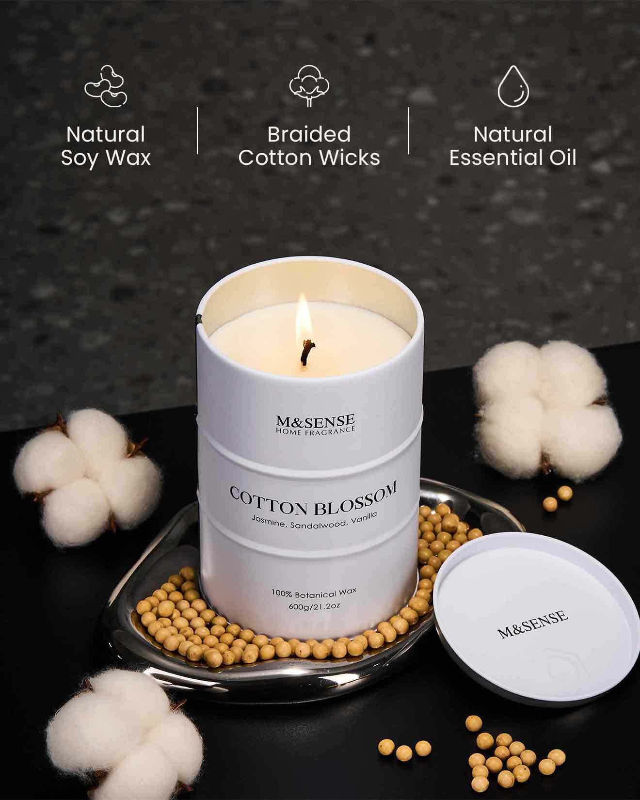 Experience the essence of M&SENSE with our 11.3oz Natural Soy Blend Candle, crafted from premium soy and palm wax for a longer, cleaner burn and exceptional fragrance throw. Each candle is designed with lead-free cotton flat braid wicks, ensuring a steady flame with minimal soot while filling your home with captivating aroma for up to 60 hours. Housed in a reusable and recyclable tin and elegantly packaged, it’s the perfect sustainable gift for any occasion, from holidays and birthdays to anniversaries and special moments. M&SENSE—where natural luxury meets mindful living.