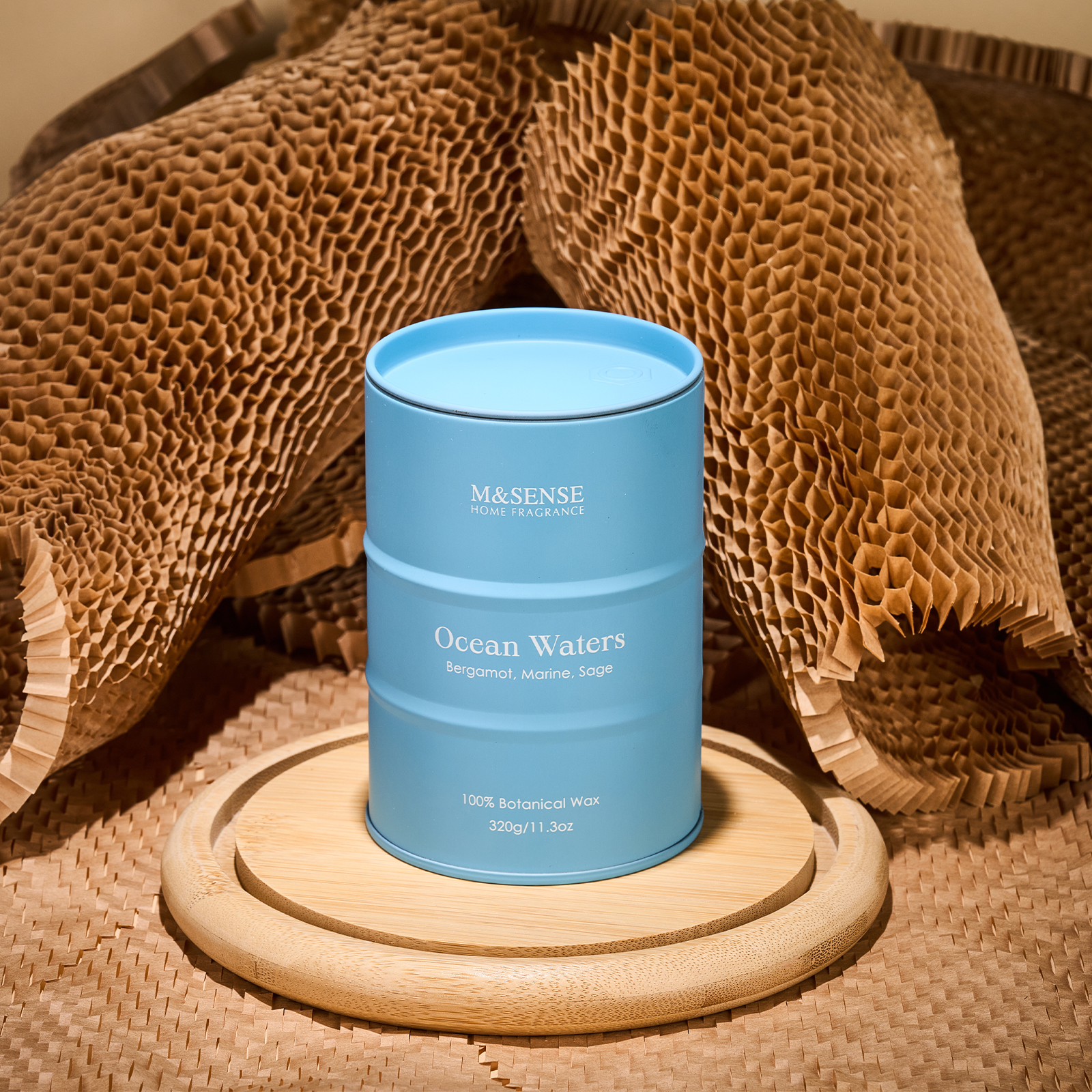 A breath of salty ocean breeze drifts through notes of clean linen and cool marine mist. Encased in a tranquil blue marble jar, this M&SENSE Ocean Waters Scented Candle brings the refreshing serenity of the sea straight into your space — a crisp, coastal escape with every flicker.