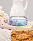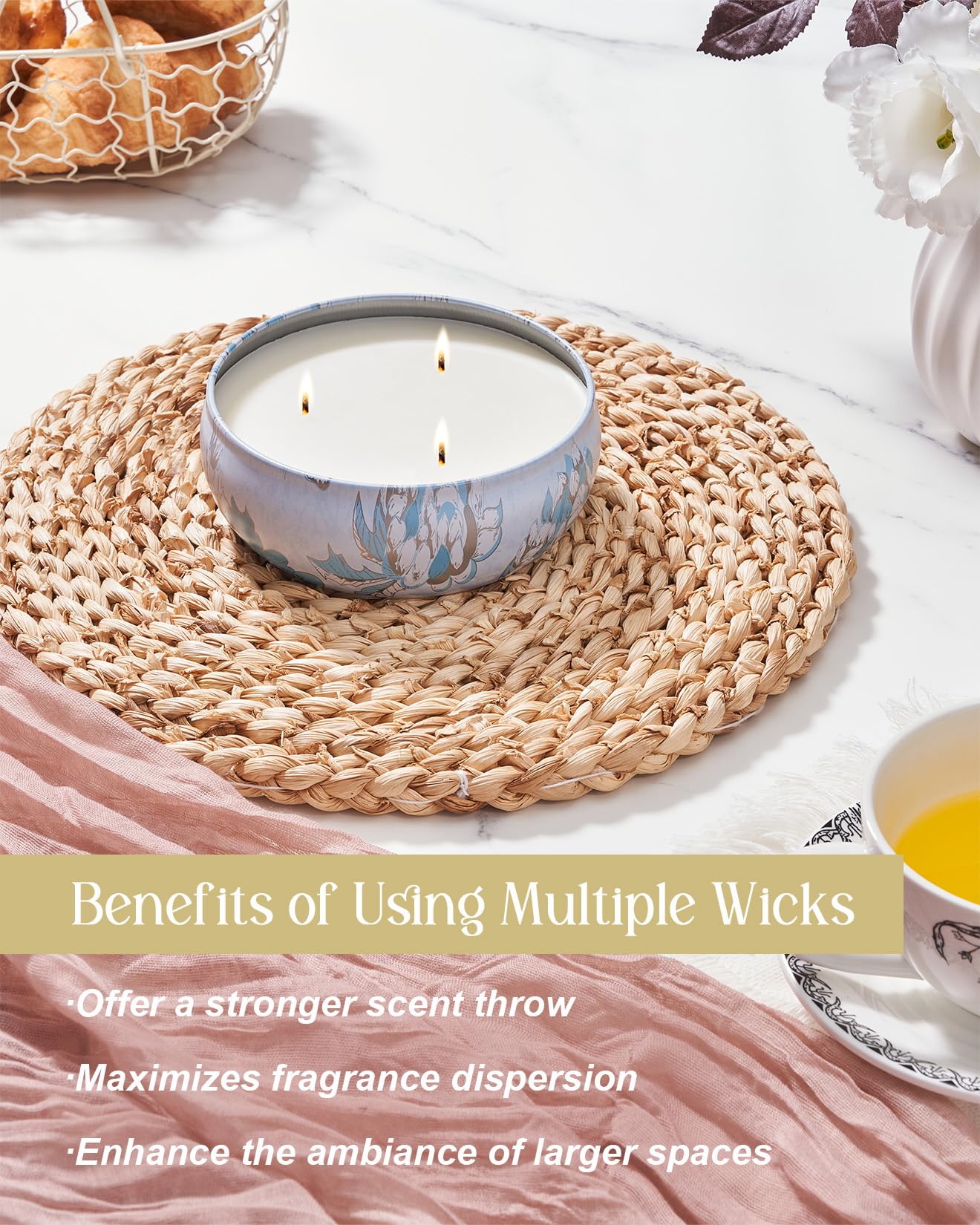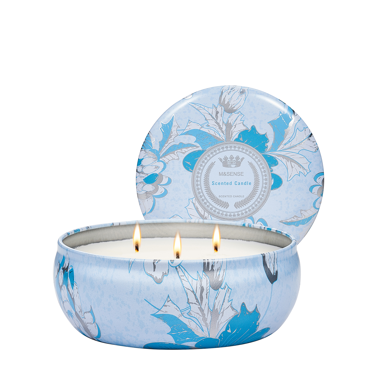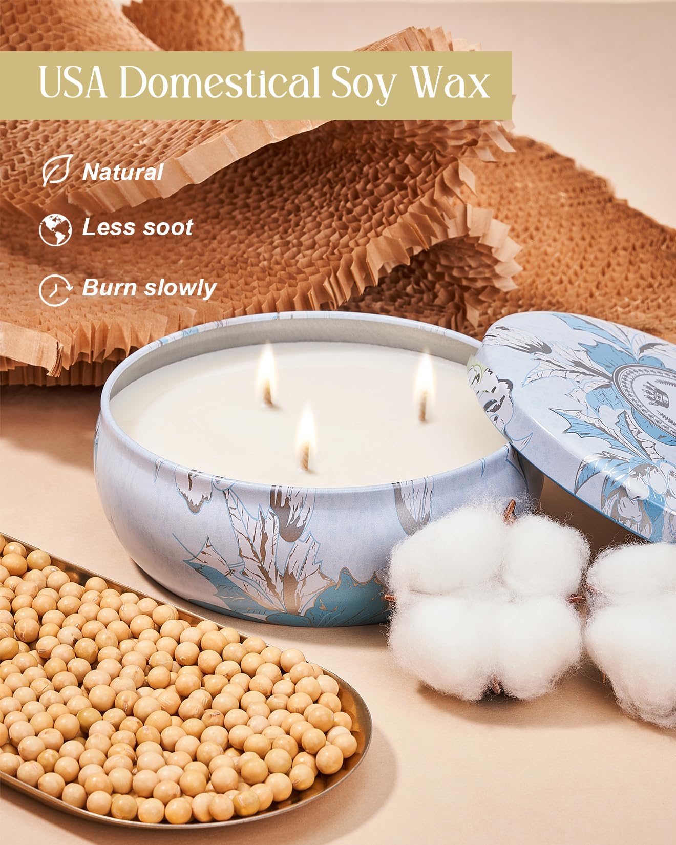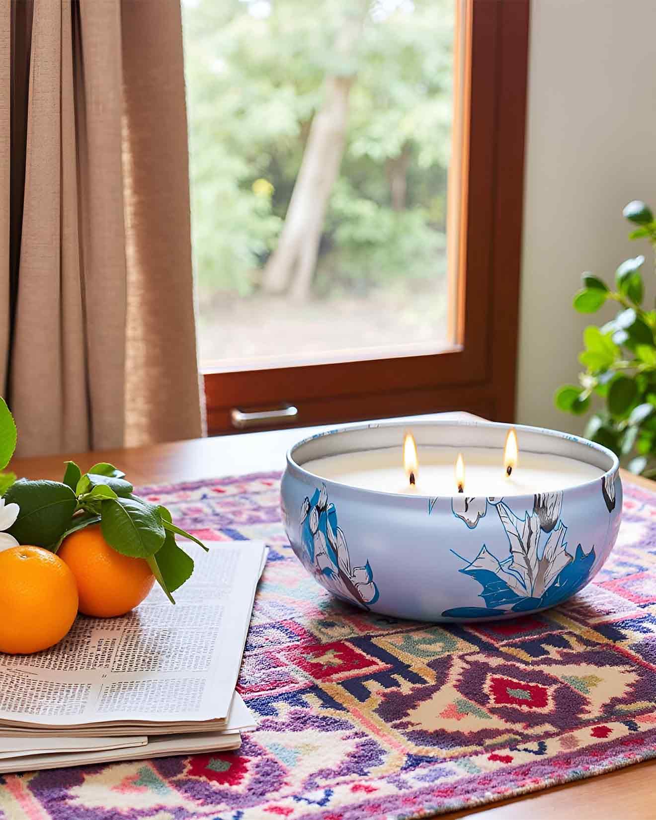 Elevate your home with our sustainable 3-wick scented candles. Hand-poured with American-grown soy and vegetable wax, each candle comes in a reusable tin and recycled packaging. Three self-trimming cotton wicks release stronger fragrance, filling larger spaces with an even, clean burn for up to 40–50 hours. Featuring exquisite floral tins with a modern vintage touch, they double as elegant décor and can be repurposed for jewelry or small keepsakes. Available in multiple scents, they bring warmth and soothing ambiance to every room.