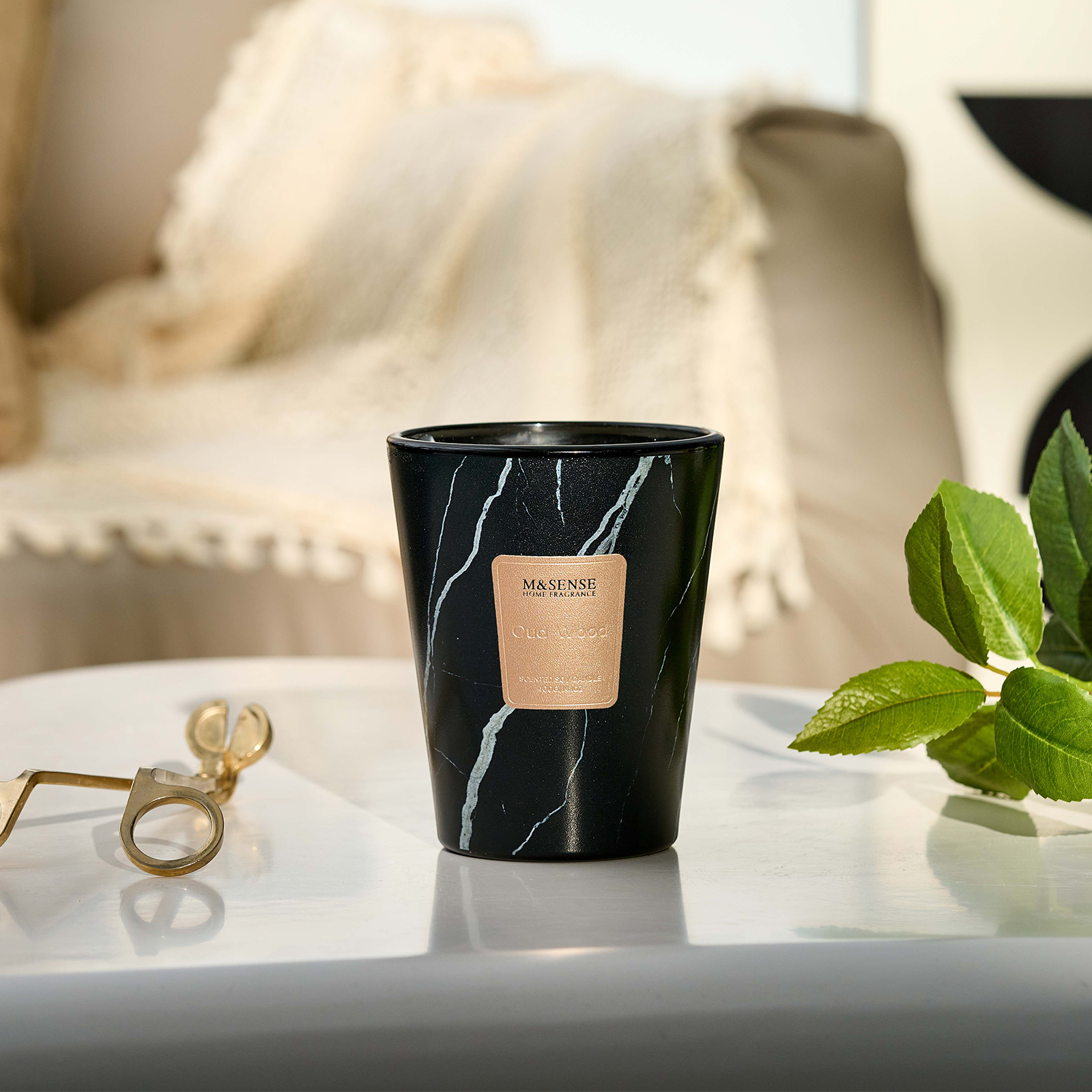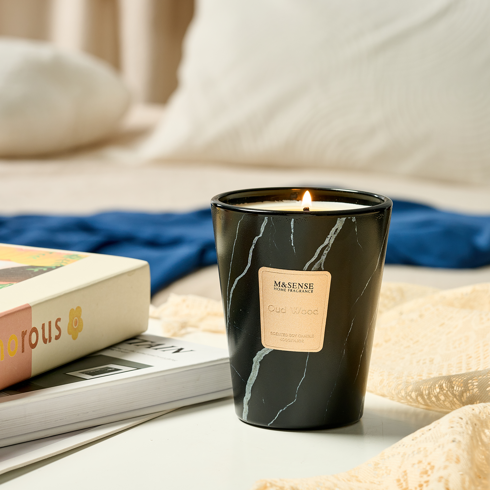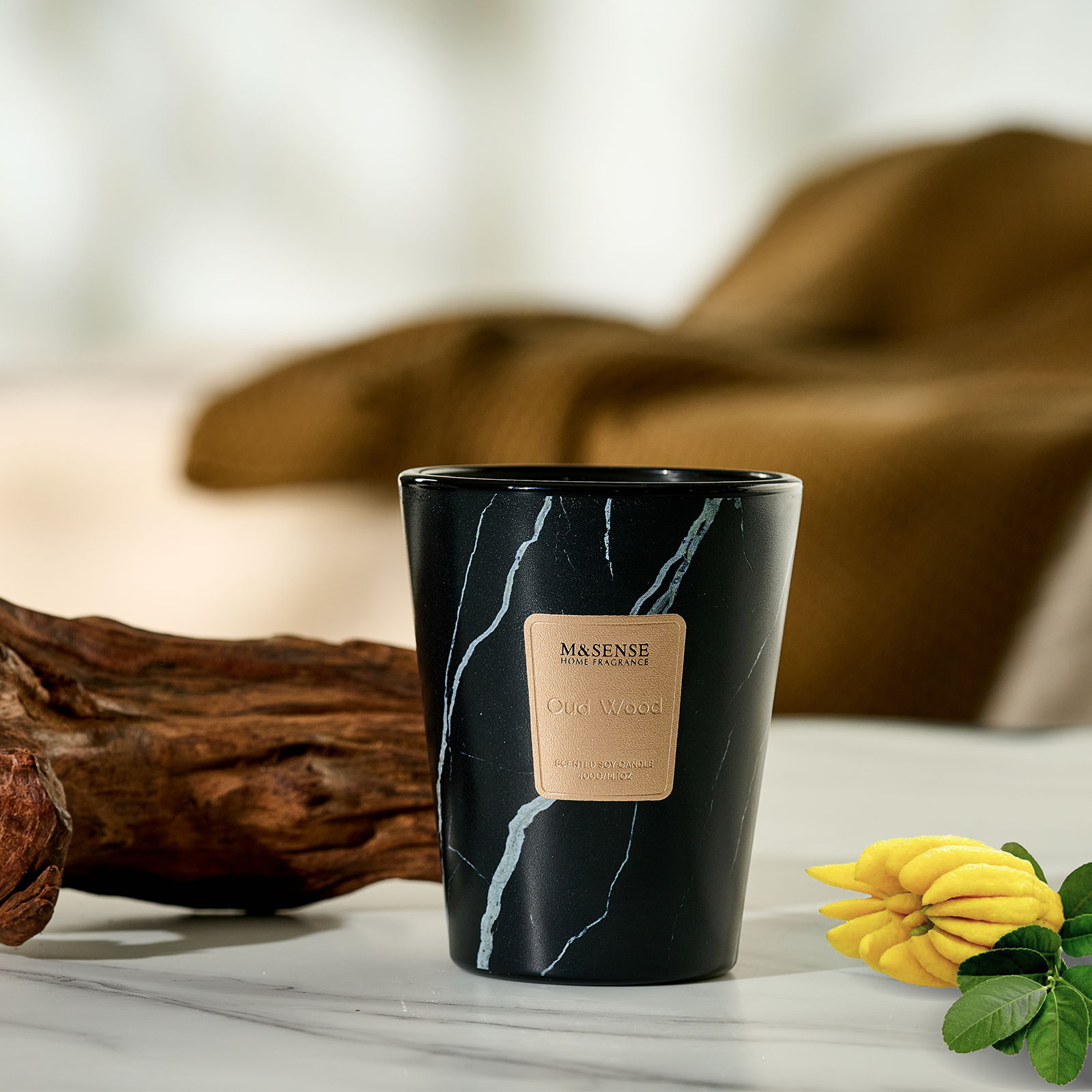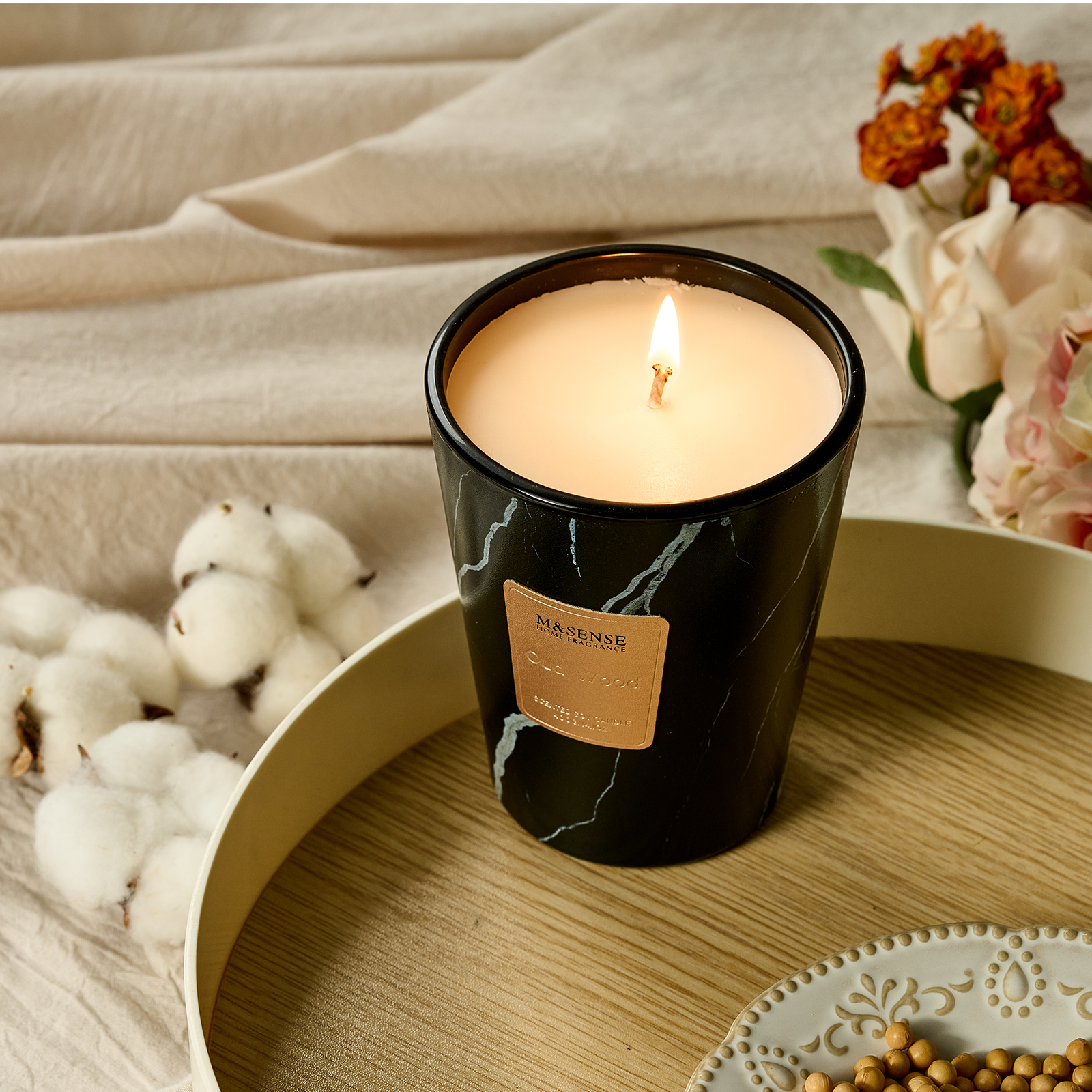 As the flame flickers to life, crisp bergamot cuts through the air—fresh, citrusy, and bright like morning light through linen curtains. Beneath it, the ancient richness of oud wood unfolds—smoky, resinous, and warm, grounding the space in quiet luxury. A soft trace of calamus adds a green, spicy undertone, like a hidden garden after rain.