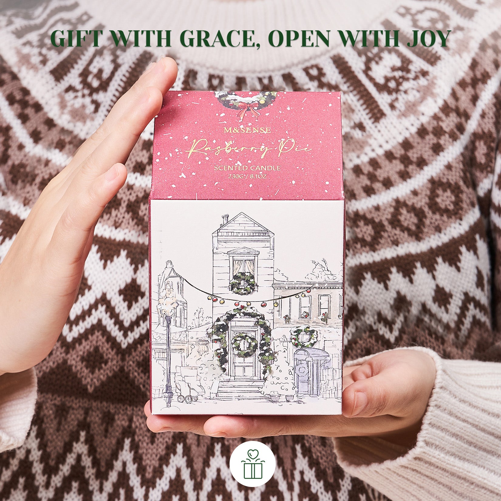 M&SENSE candles are crafted with natural soy wax and premium essential oils, offering a clean, even burn that fills your space with rich, lasting fragrance. Each 8.1-ounce candle delivers a smoke-free experience and a warm, inviting atmosphere. Inspired by winter’s festive charm, the SnowyVillage series combines cozy seasonal scents with elegant holiday packaging, setting the perfect mood. Free from paraffin, phthalates, and parabens, these candles provide a safe, non-toxic aromatic experience. Beautifully crafted and presented, the candle is more than a home accent—it’s a heartfelt holiday gift that brings warmth and joy.