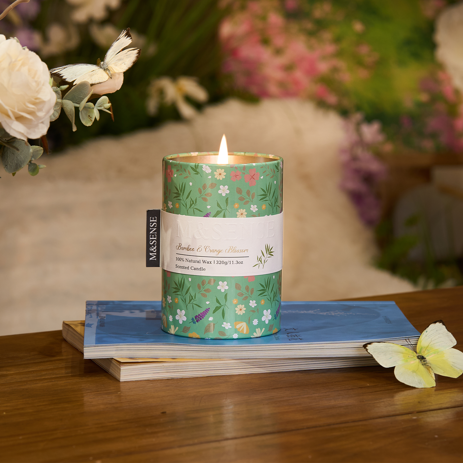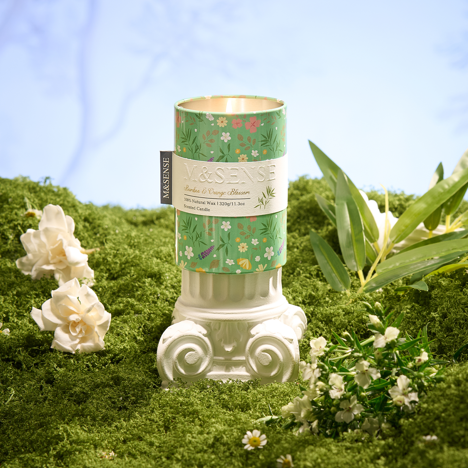 Fresh green leaves rustle in the breeze as orange blossom glows under soft sunlight. Jasmine trails gently behind, warm and serene. It’s like a quiet garden morning—pure, floral, full of life. Light this scent, and let nature breathe with you.