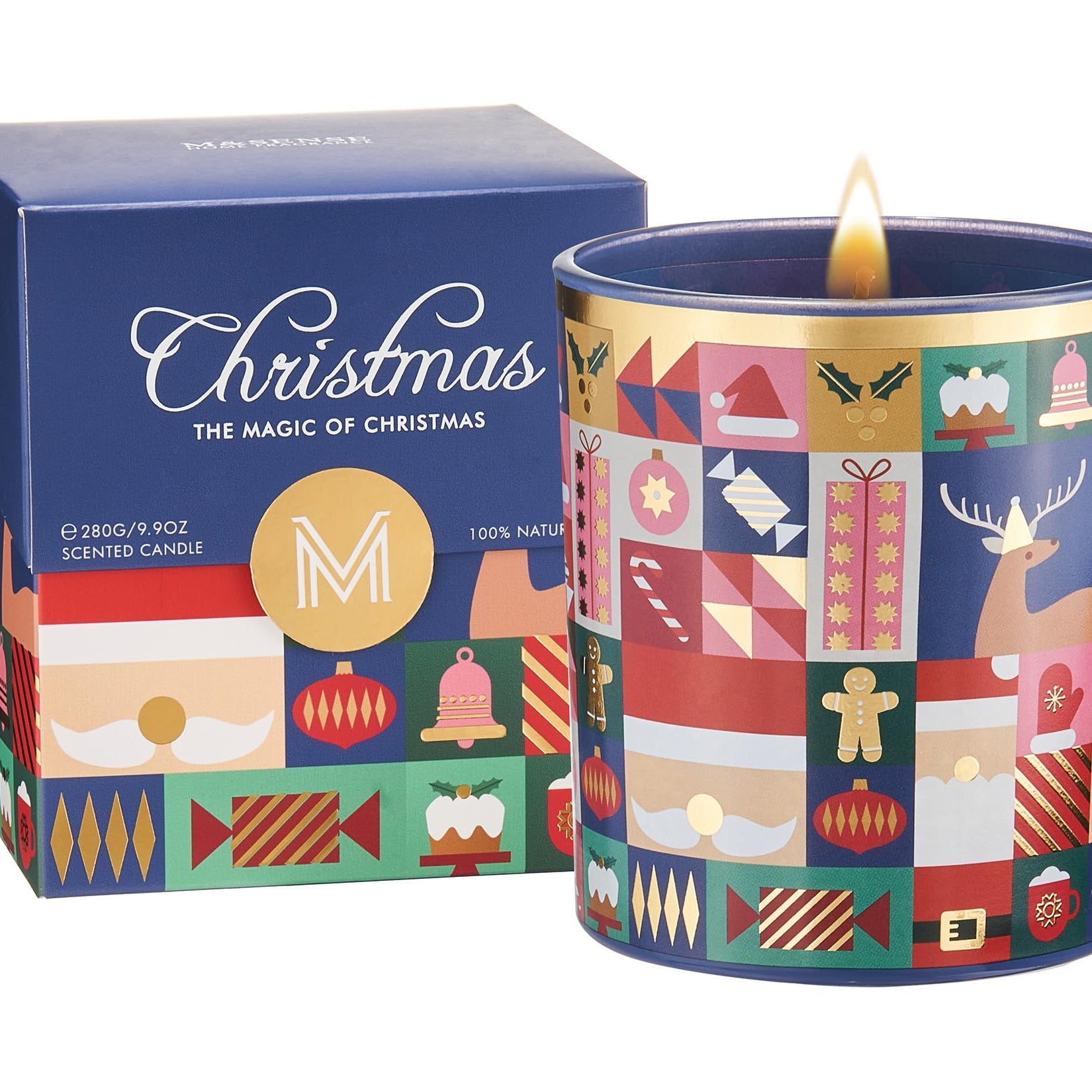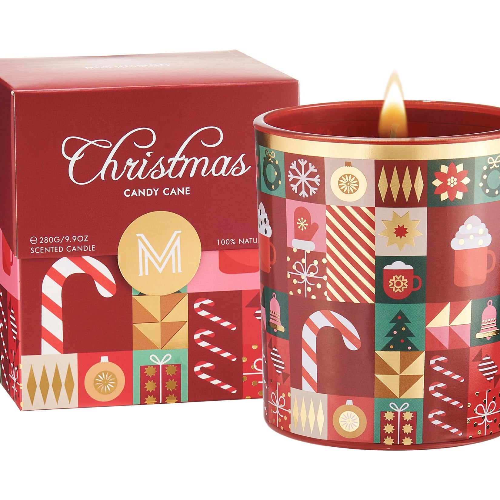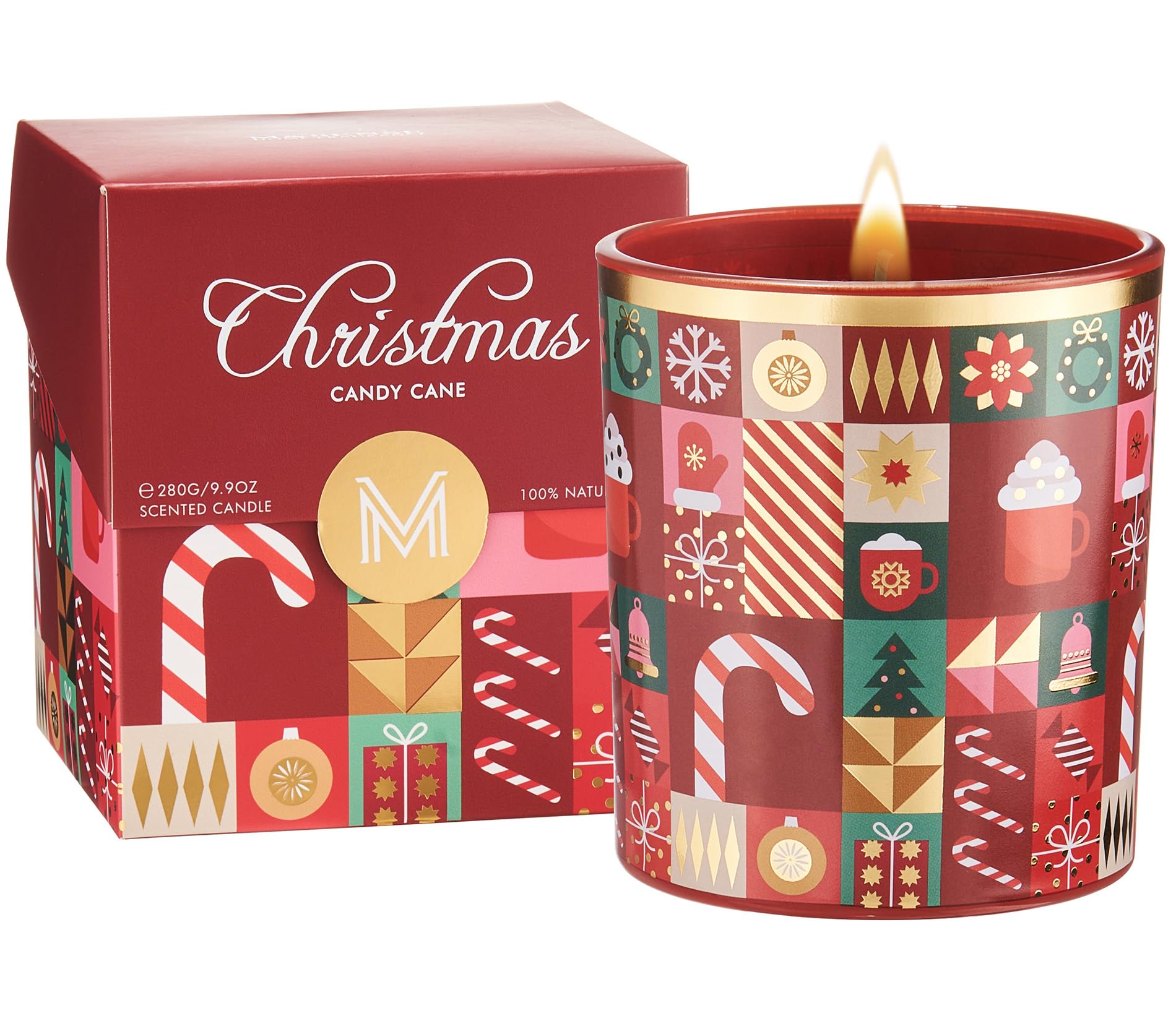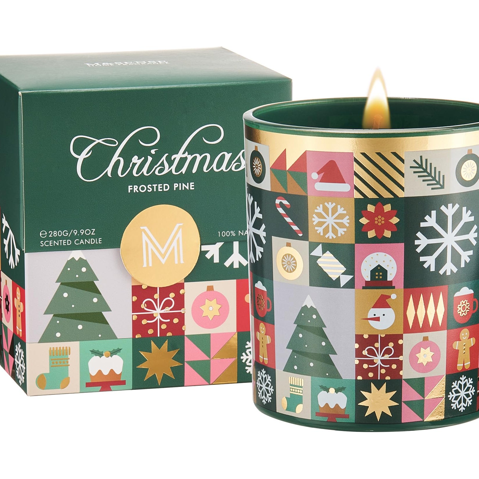 This Christmas candle features a festive red and green design with snowflakes and a holiday wreath. Infused with authentic gingerbread fragrance, it fills any space with warmth and coziness. Made from natural soy and vegetable wax with a lead-free cotton wick, it burns clean and safely. Beautifully packaged in recyclable materials, it’s a perfect gift or seasonal home décor.