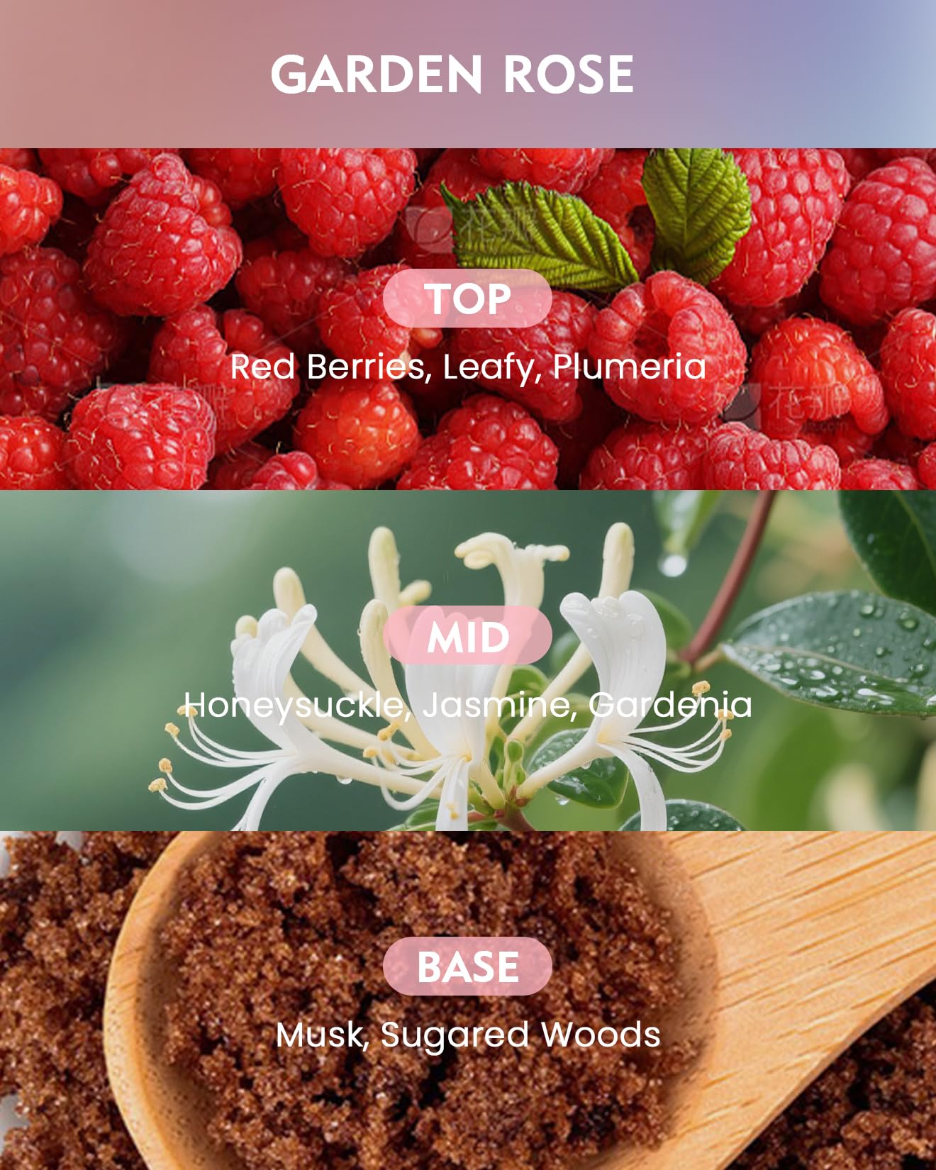 Rose,Red berry,Jasmine,Musk