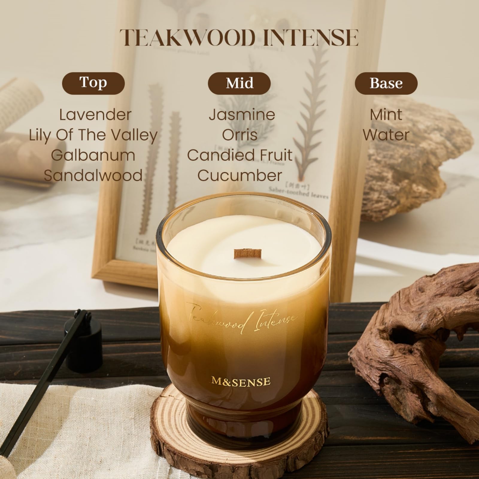 Experience the warmth of M&SENSE with our 16.6oz wood wick candle, infused with premium oils for a rich fragrance journey and up to 95 hours of burn time. The natural North American black cherry wooden wick produces a soothing crackle, reminiscent of a campfire, while enhancing fragrance throw for a long-lasting aromatic experience. Made from natural wax and free of paraffin, phthalates, and parabens, it provides a safe, toxin-free burn for your home. Beautifully packaged in a reusable jar with sustainable wrapping, it’s ideal for gifting or adding an elegant accent to any space.